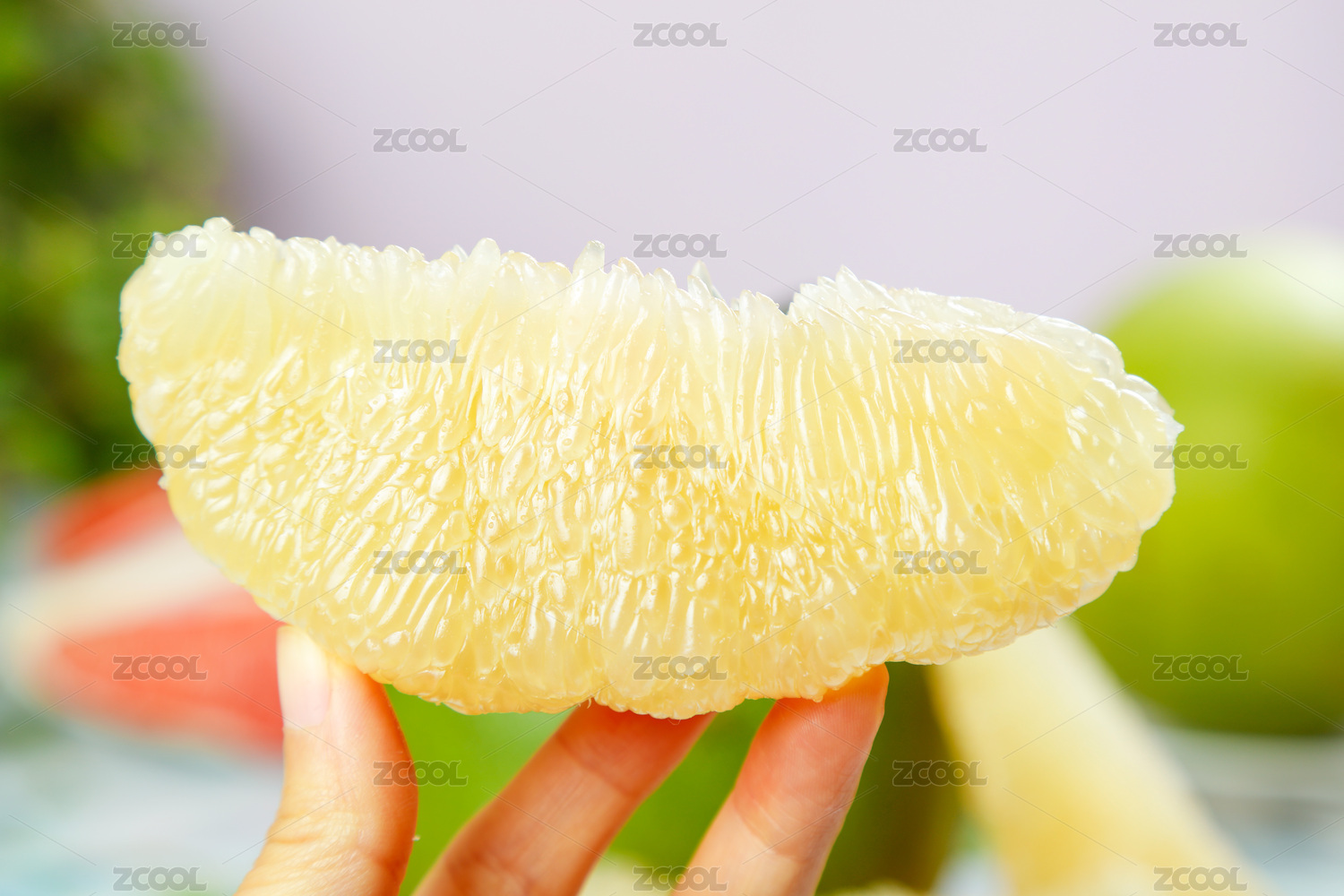 手上拿著一塊泰國(guó)青柚果肉