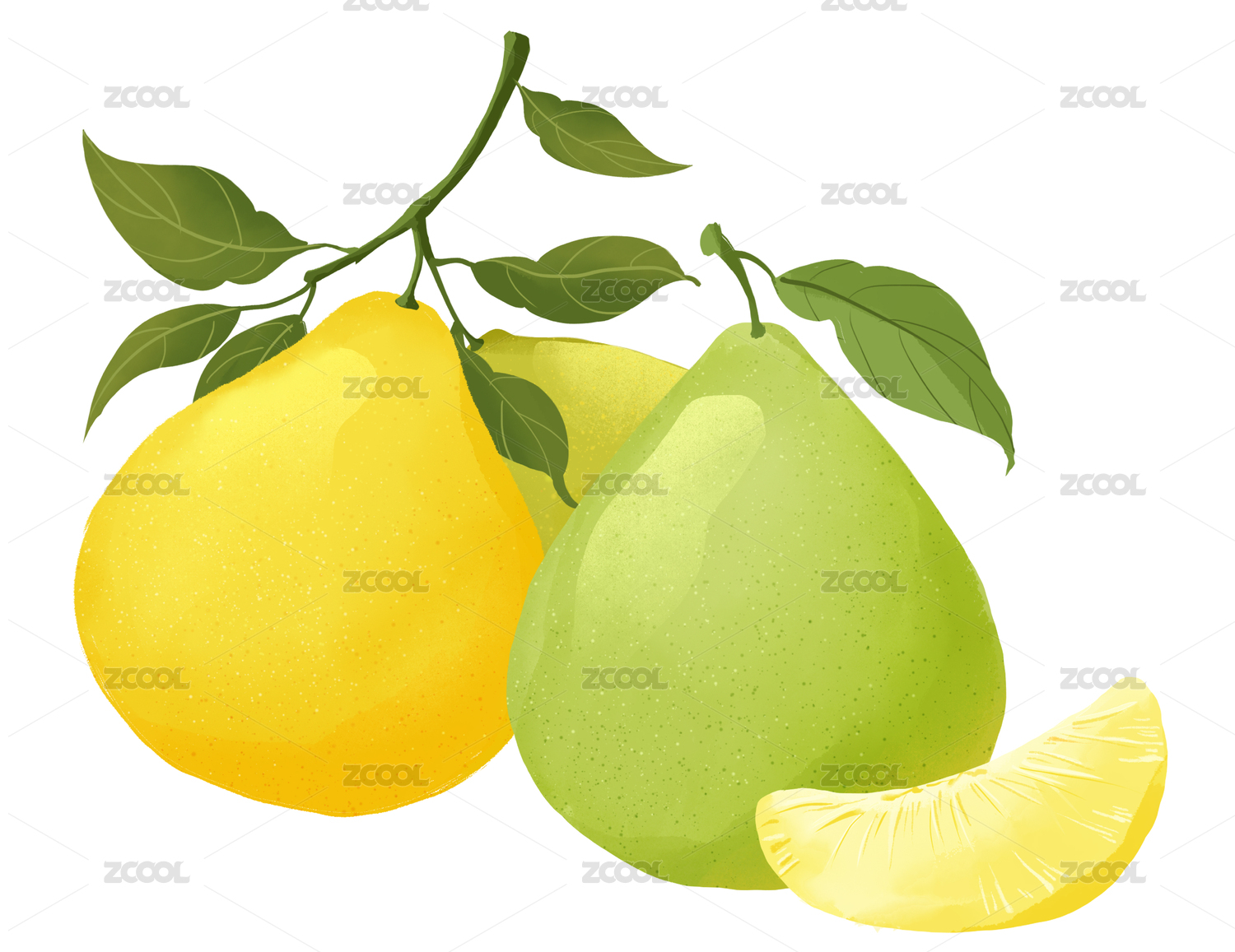 青柚水果手繪插畫(huà)