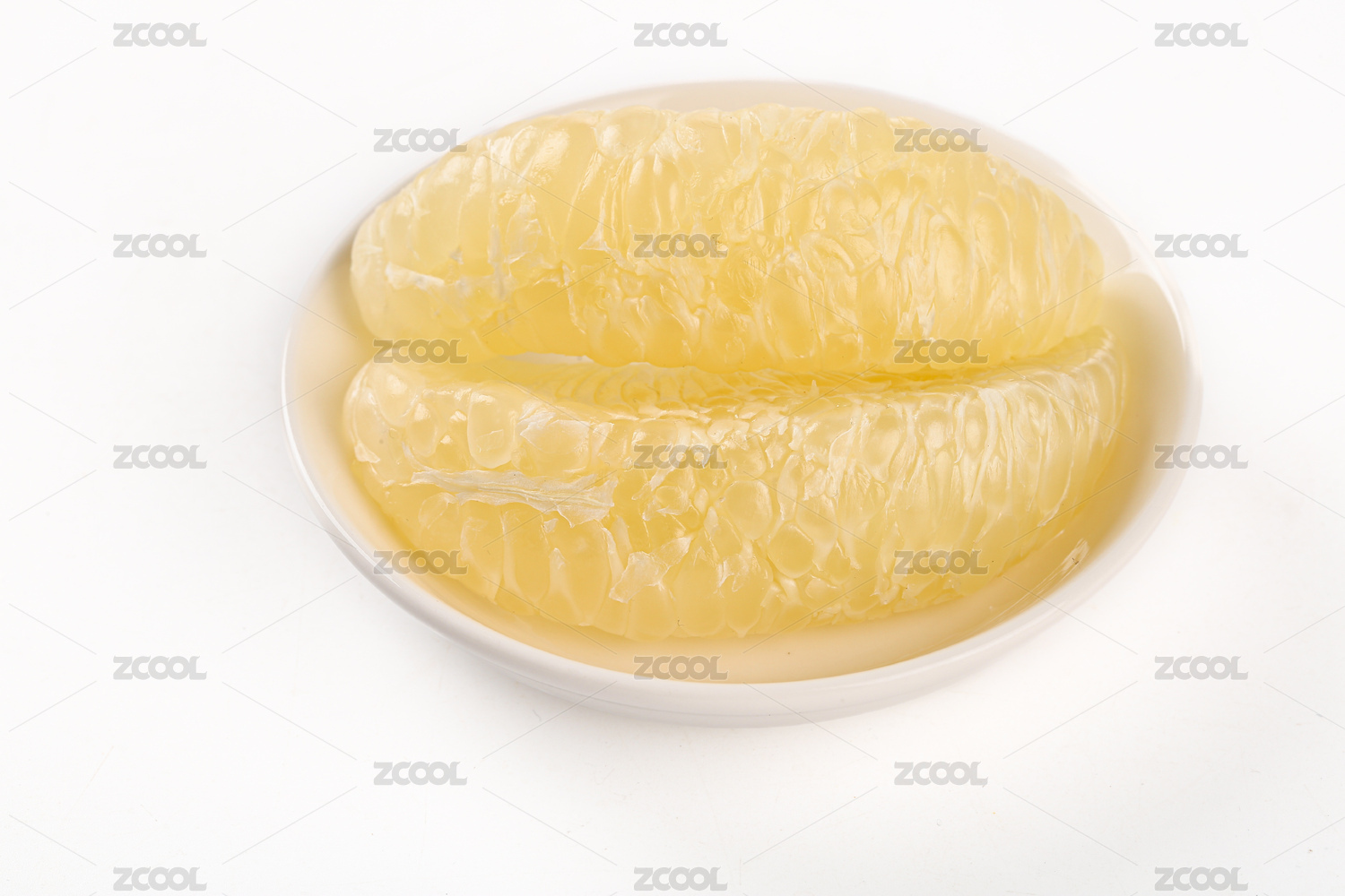 淺底上放著去皮兩塊紅心柚和一塊青柚