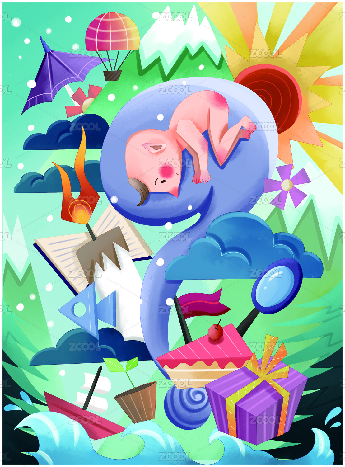 手繪出生插畫