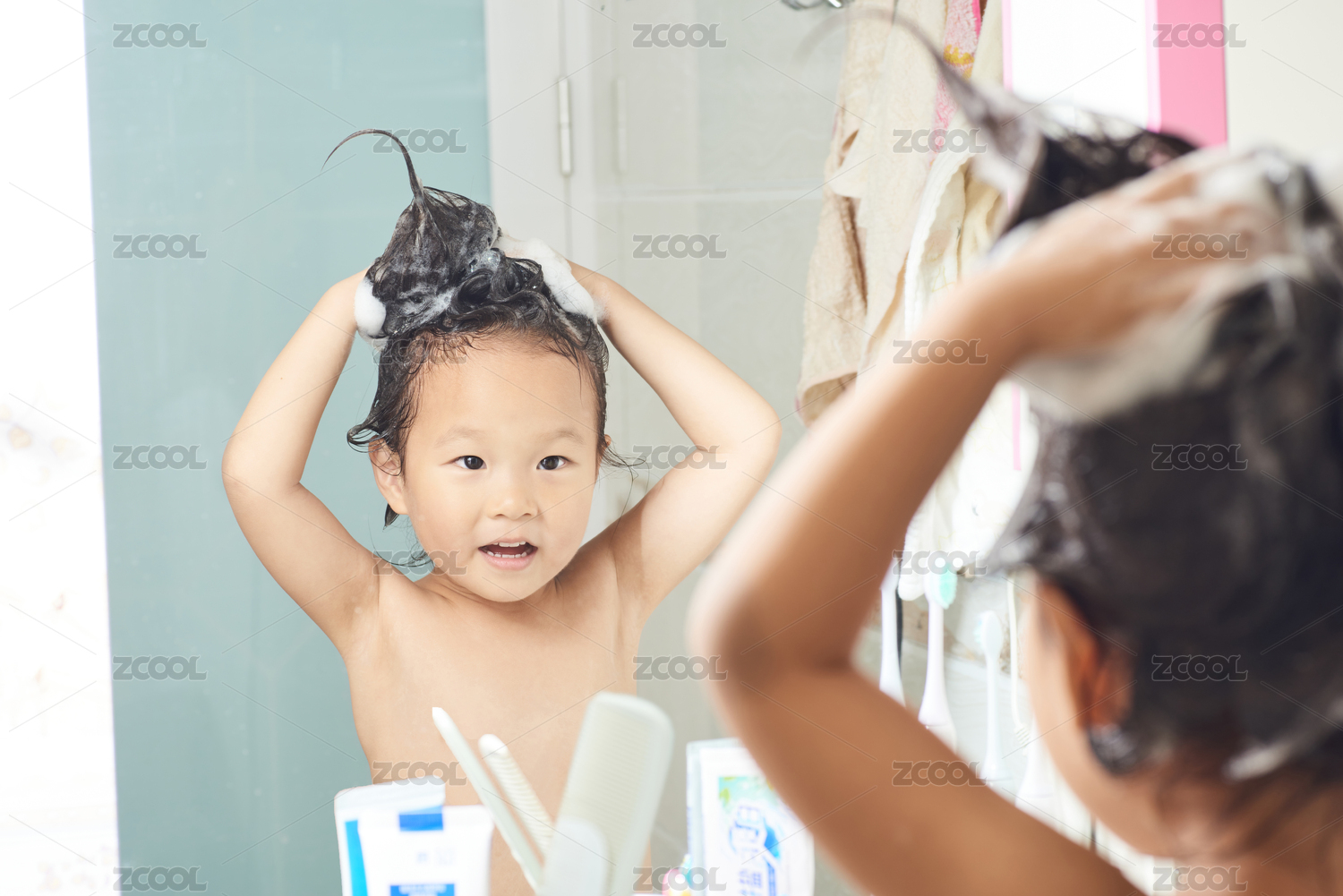 幼童在洗手間的鏡子前洗頭發(fā)2