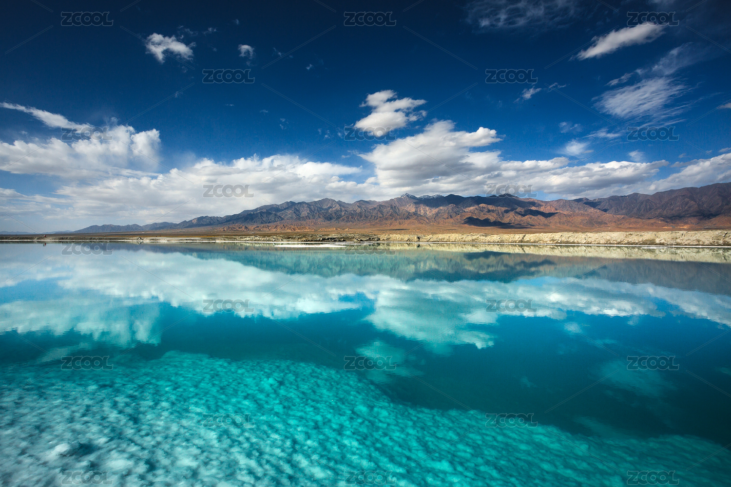 中國(guó)青海省大柴旦鎮(zhèn)翡翠湖的藍(lán)天白云