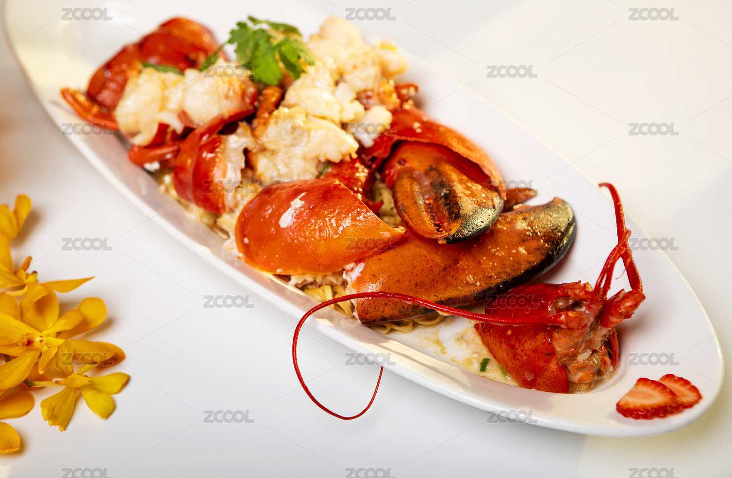 白底上放著大龍蝦