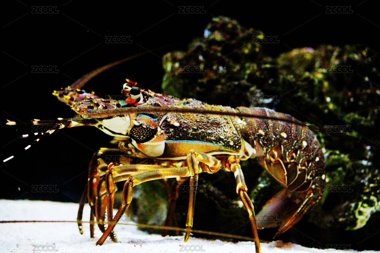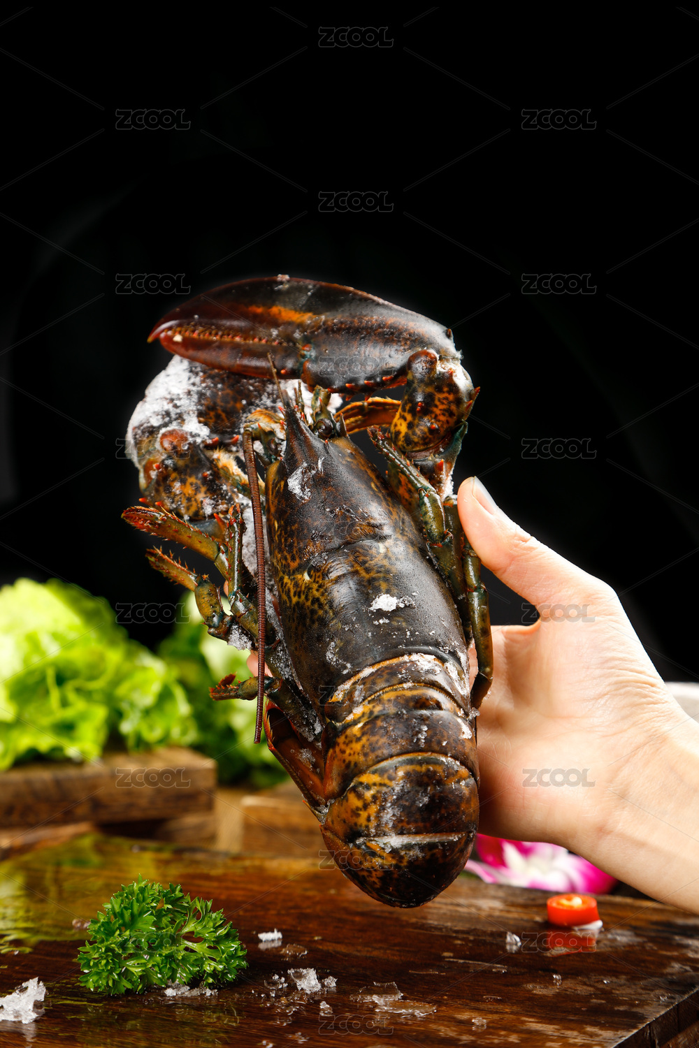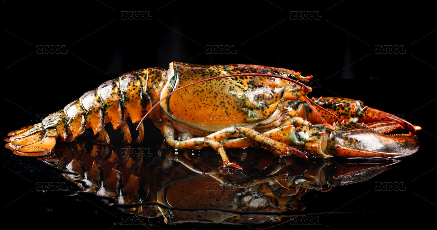 黑底上放著大龍蝦