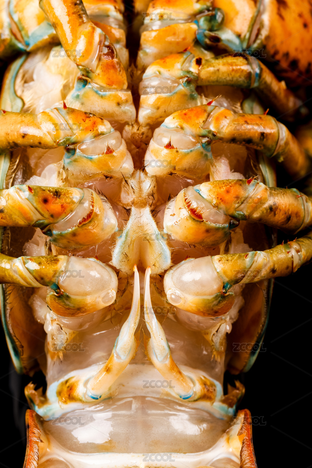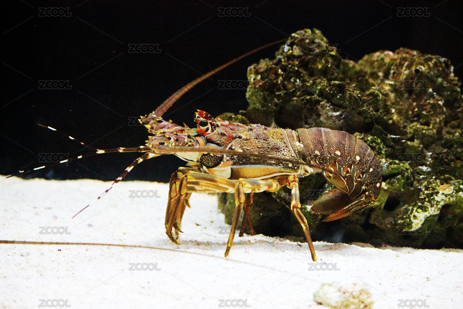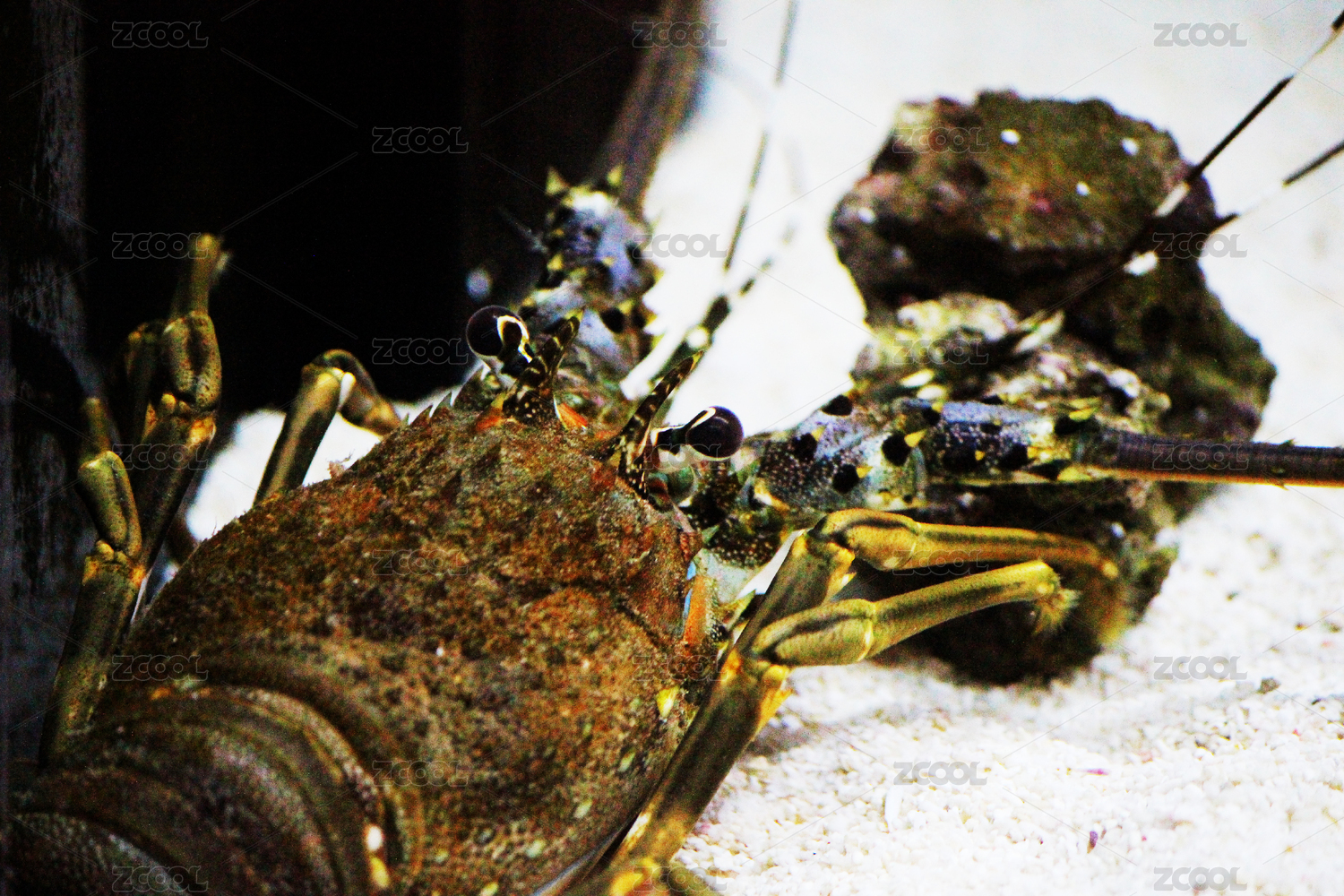 黑底上放著大龍蝦