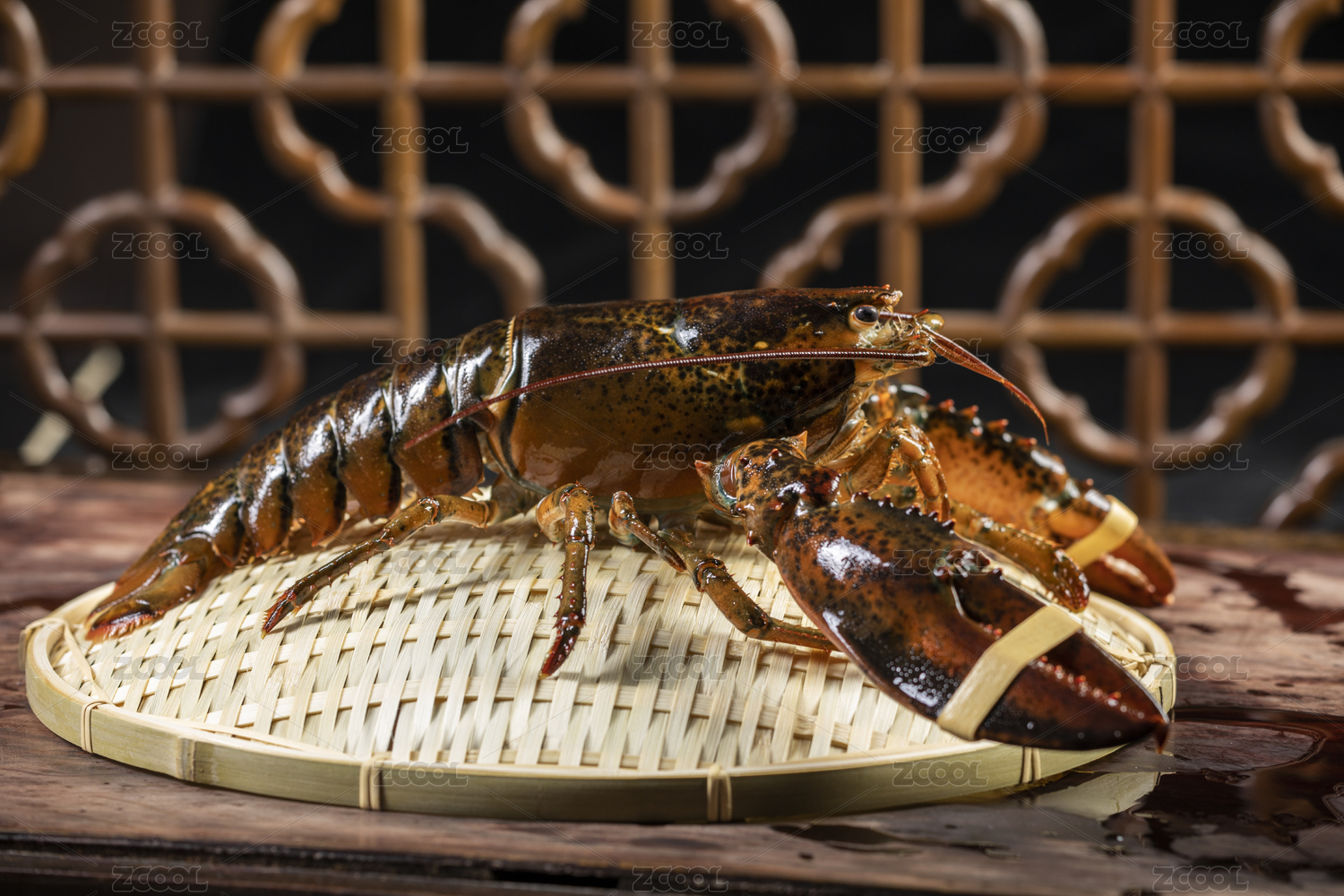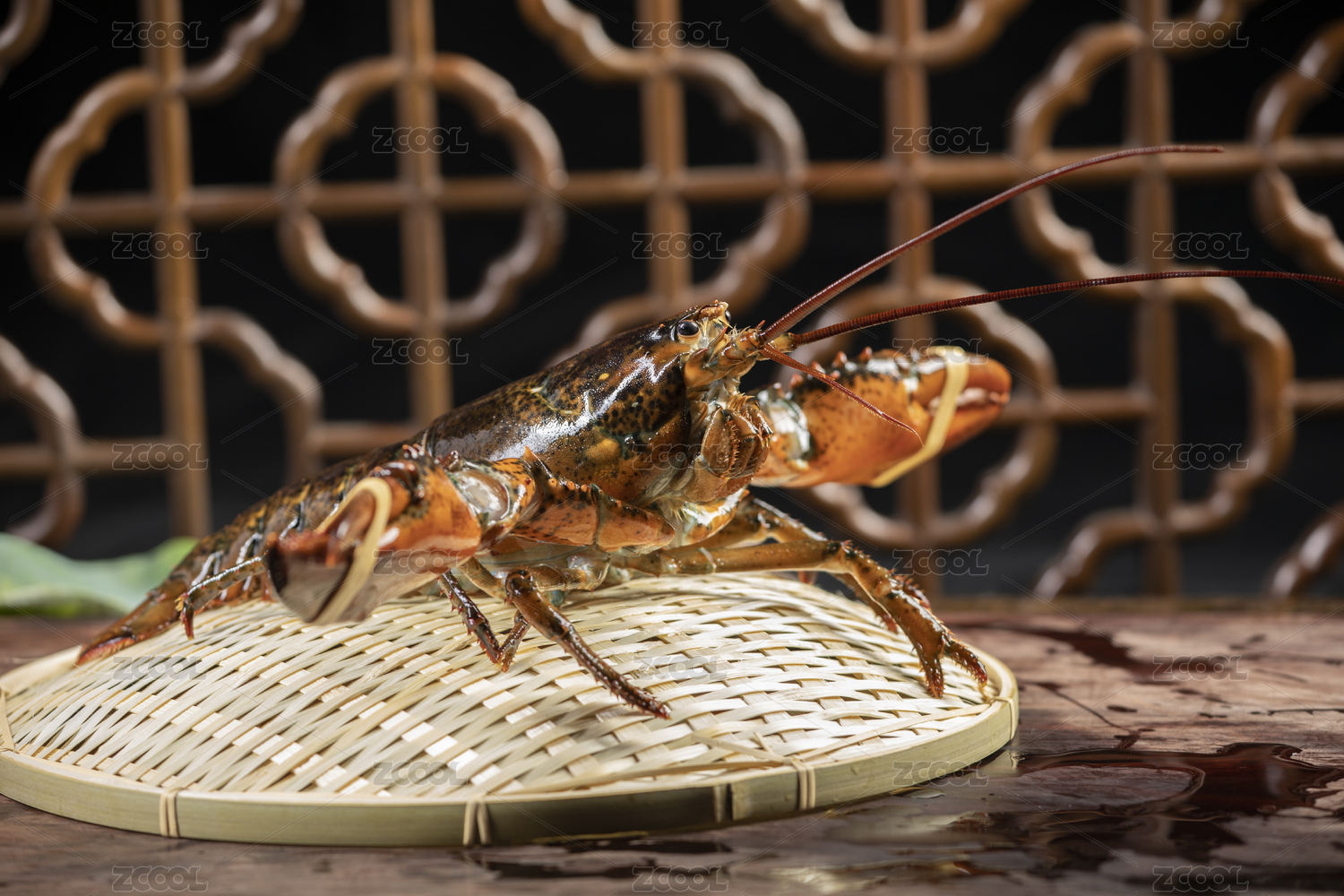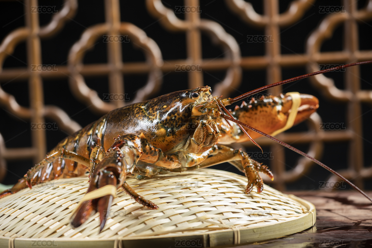 竹底上放著大龍蝦