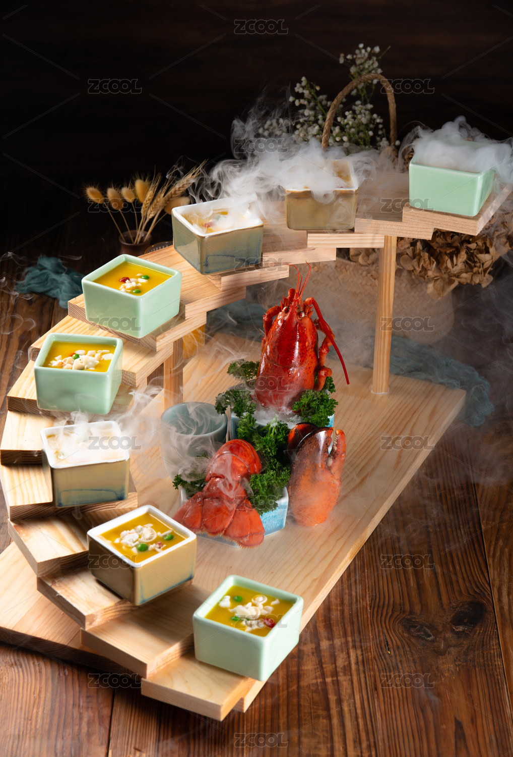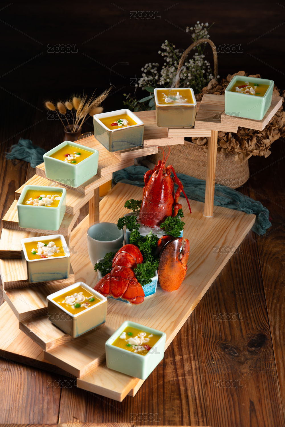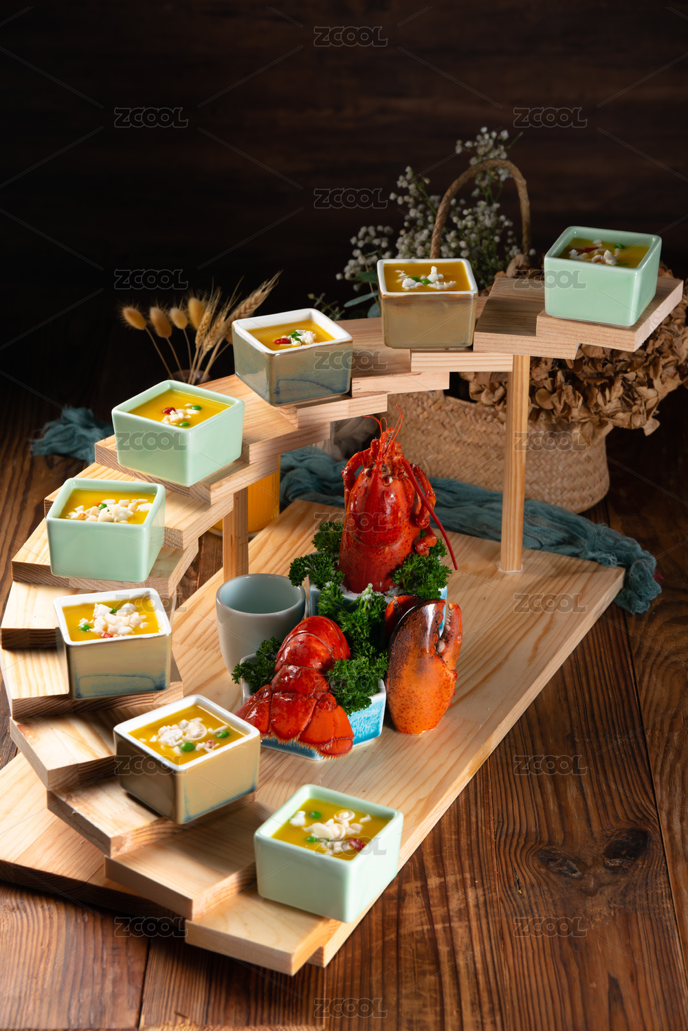 竹底上放著大龍蝦