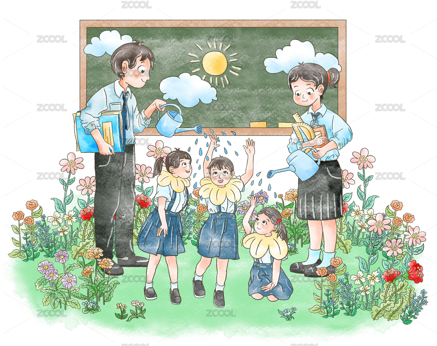 教師節(jié)插圖園丁老師學(xué)生花朵