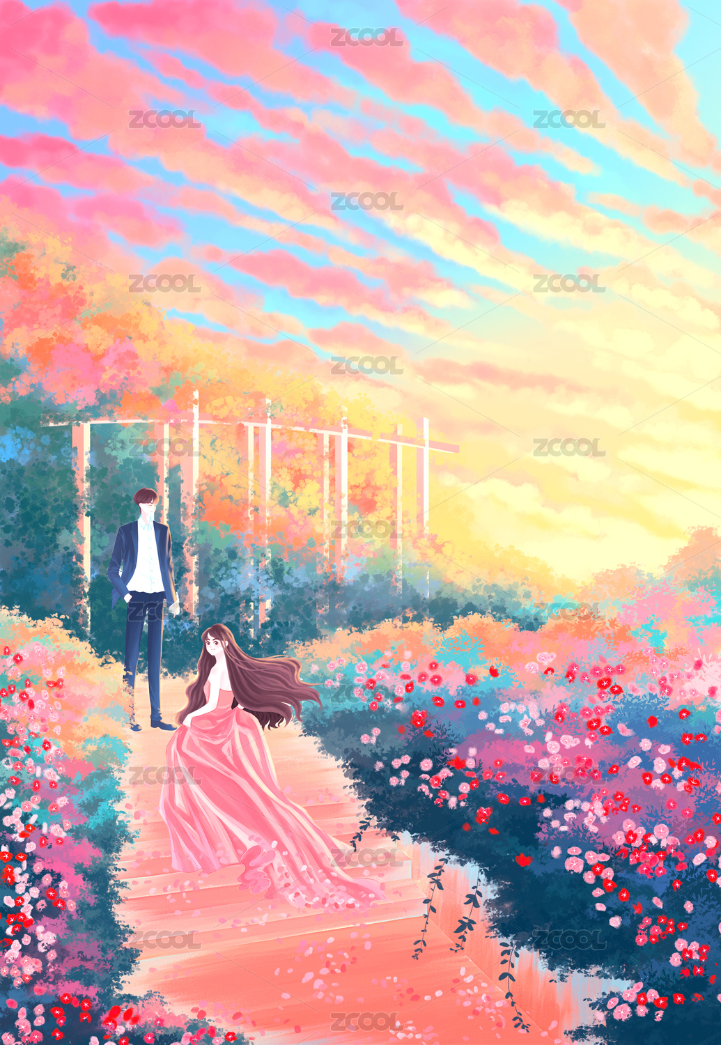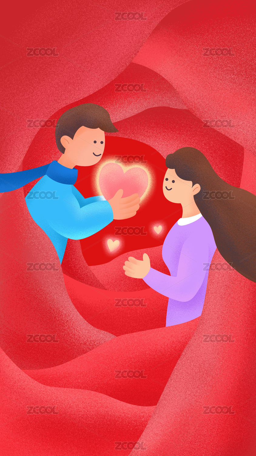 傳統(tǒng)節(jié)日七夕情人節(jié)愛(ài)情玫瑰戀人插畫(huà)海報(bào)