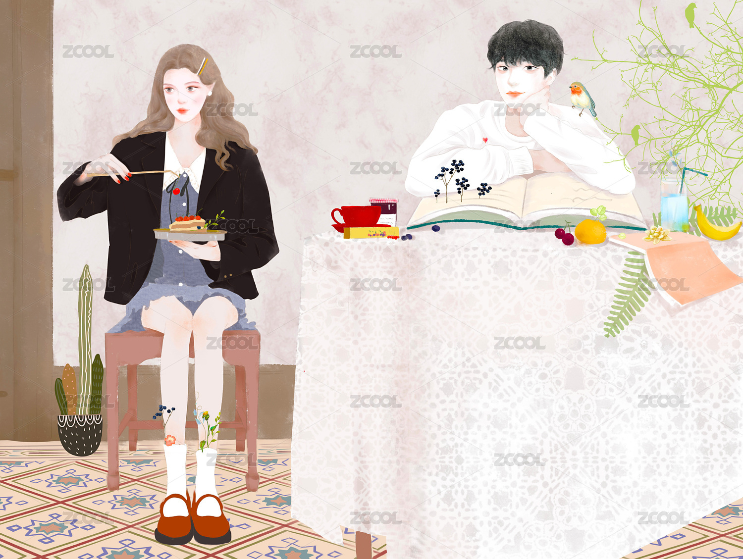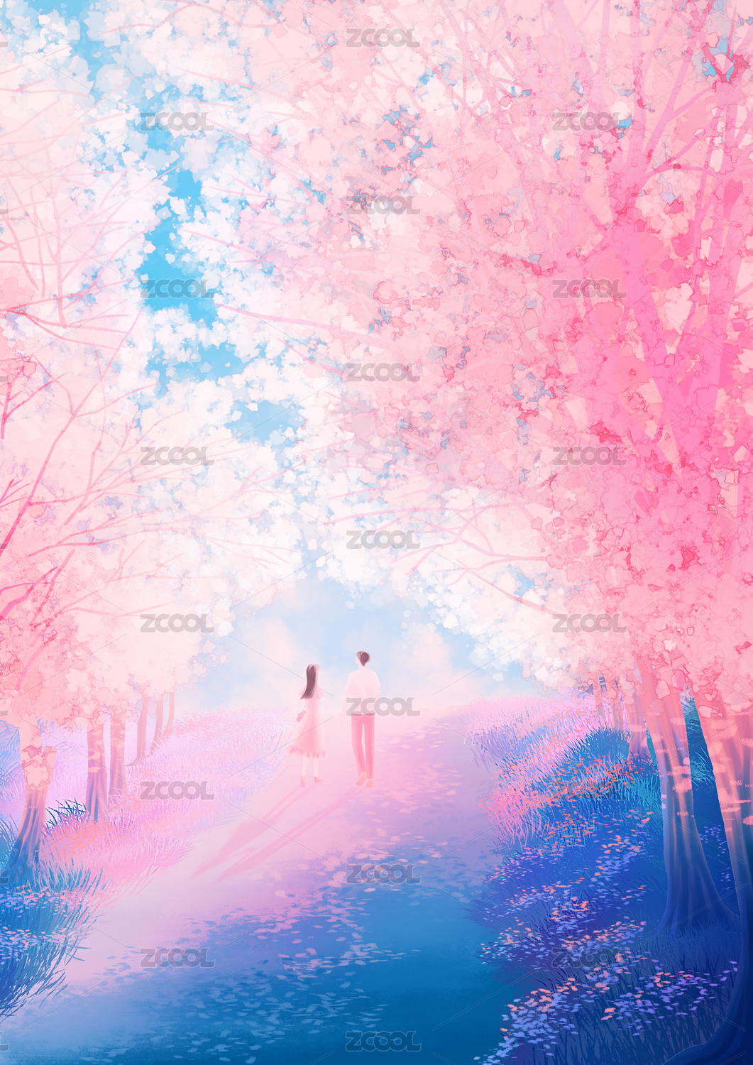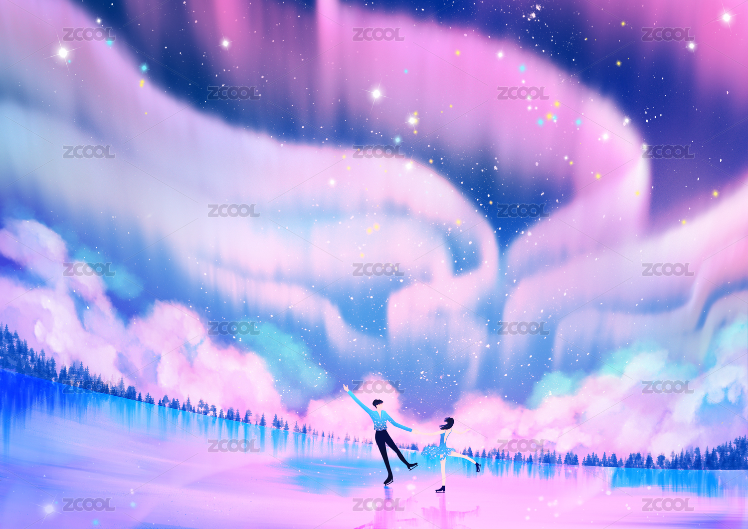 唯美夢(mèng)幻冰舞戀人插畫(huà)海報(bào)