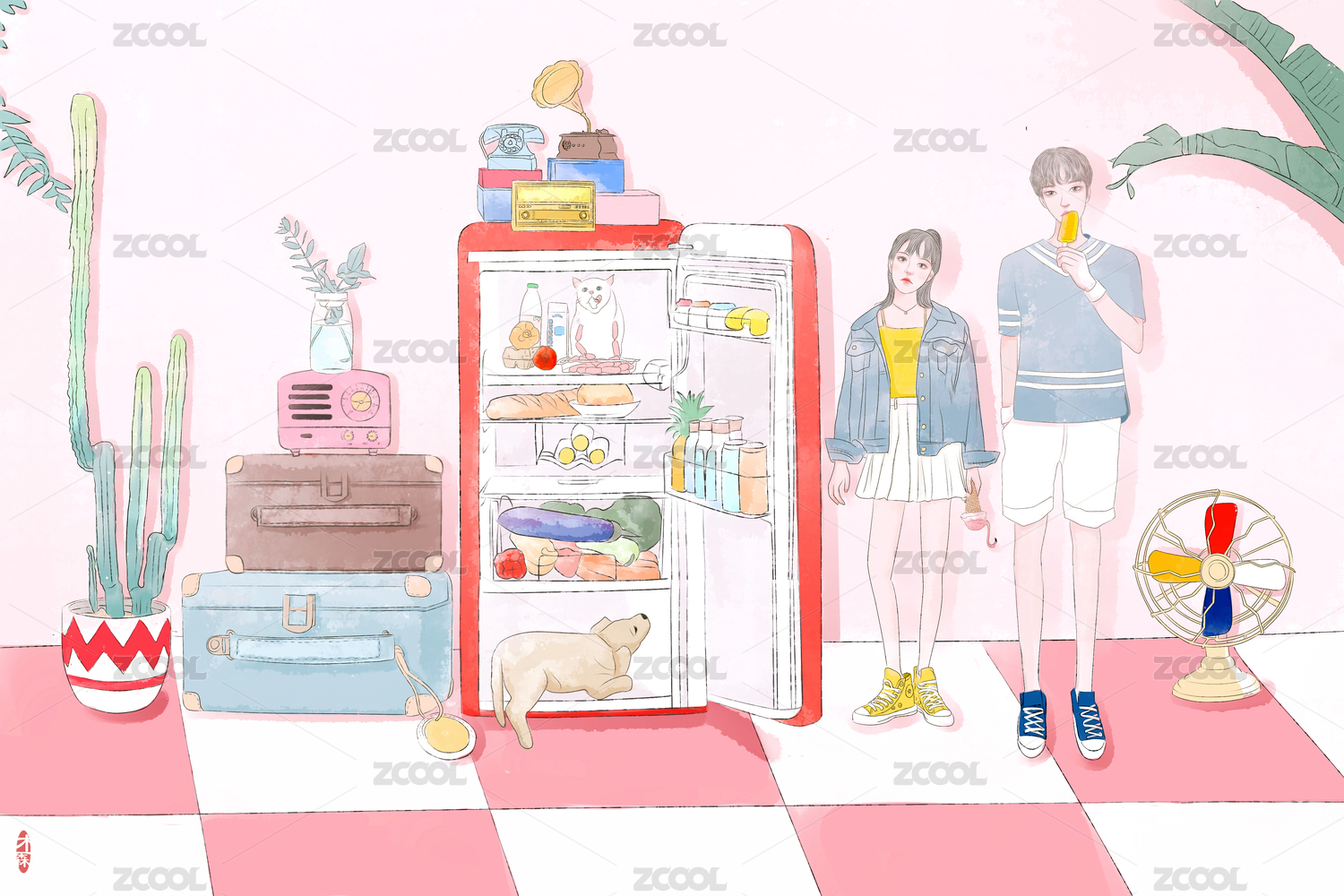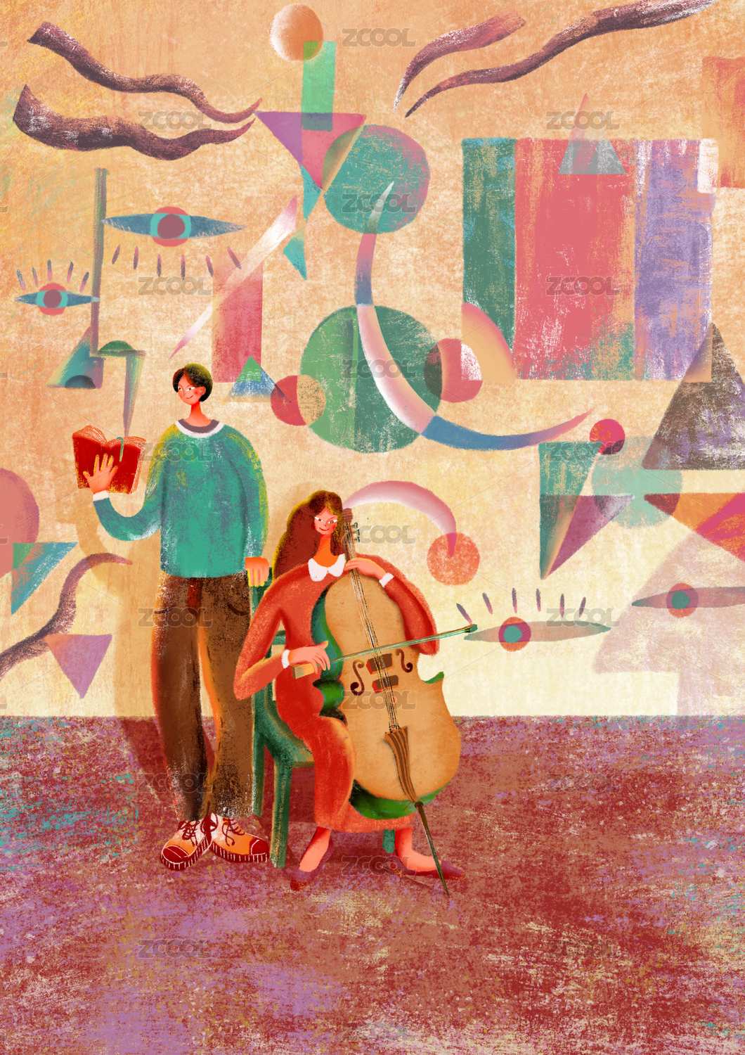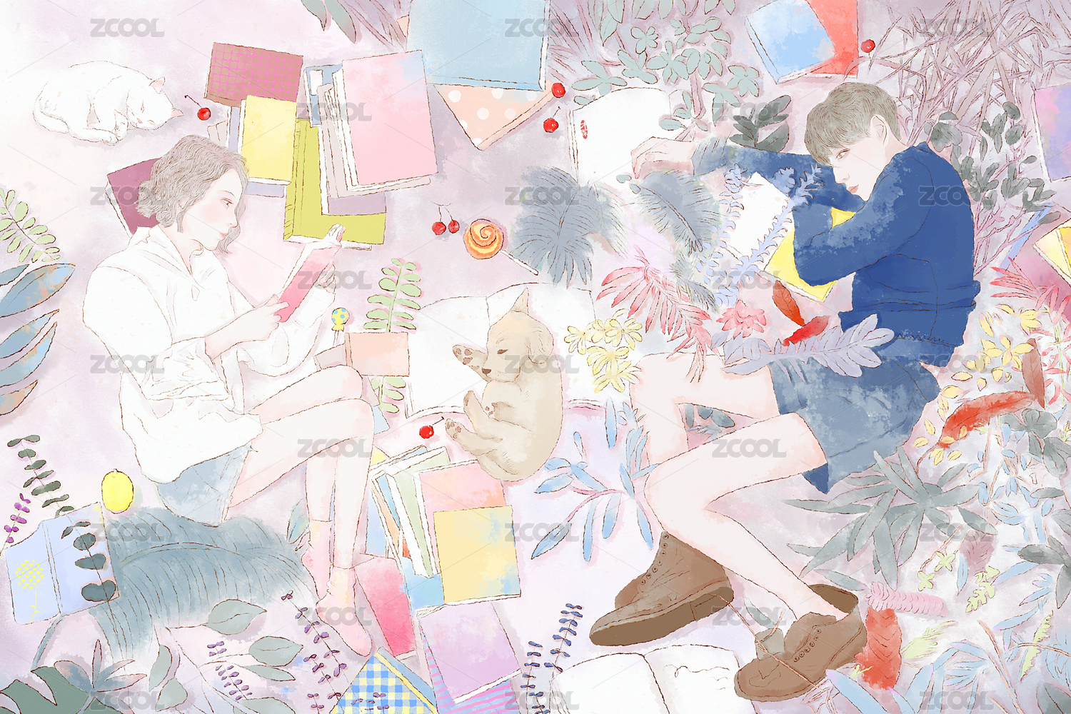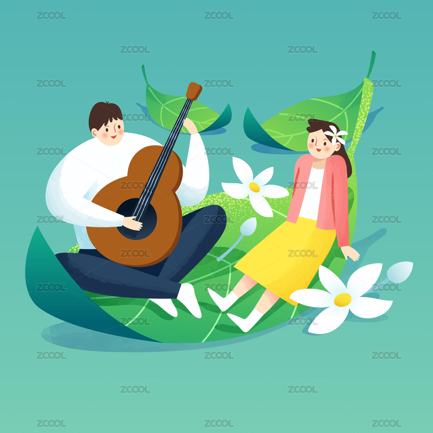 唯美夢(mèng)幻冰舞戀人插畫(huà)海報(bào)