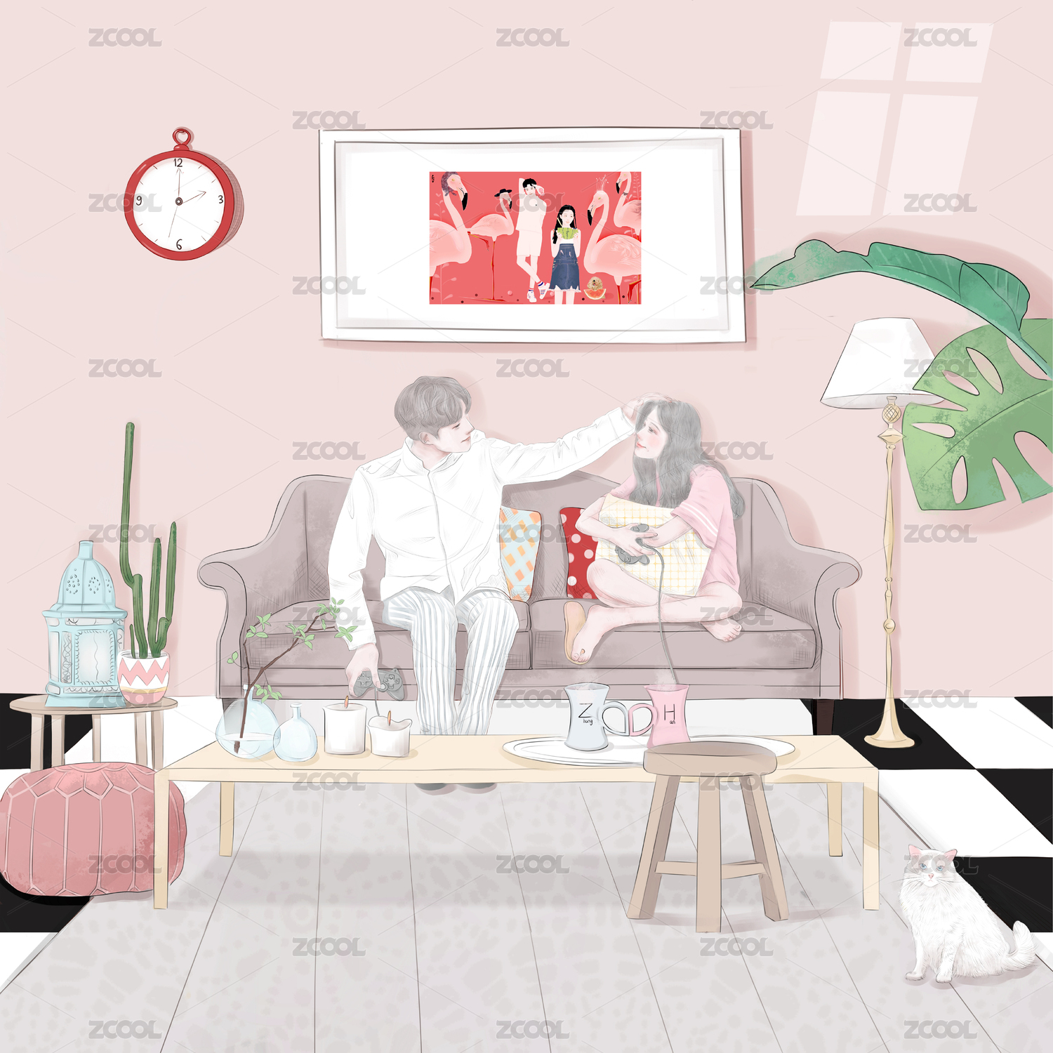 宅在家玩游戲機(jī)拿著手柄的戀人