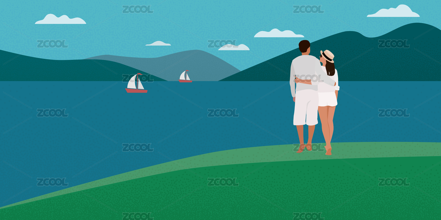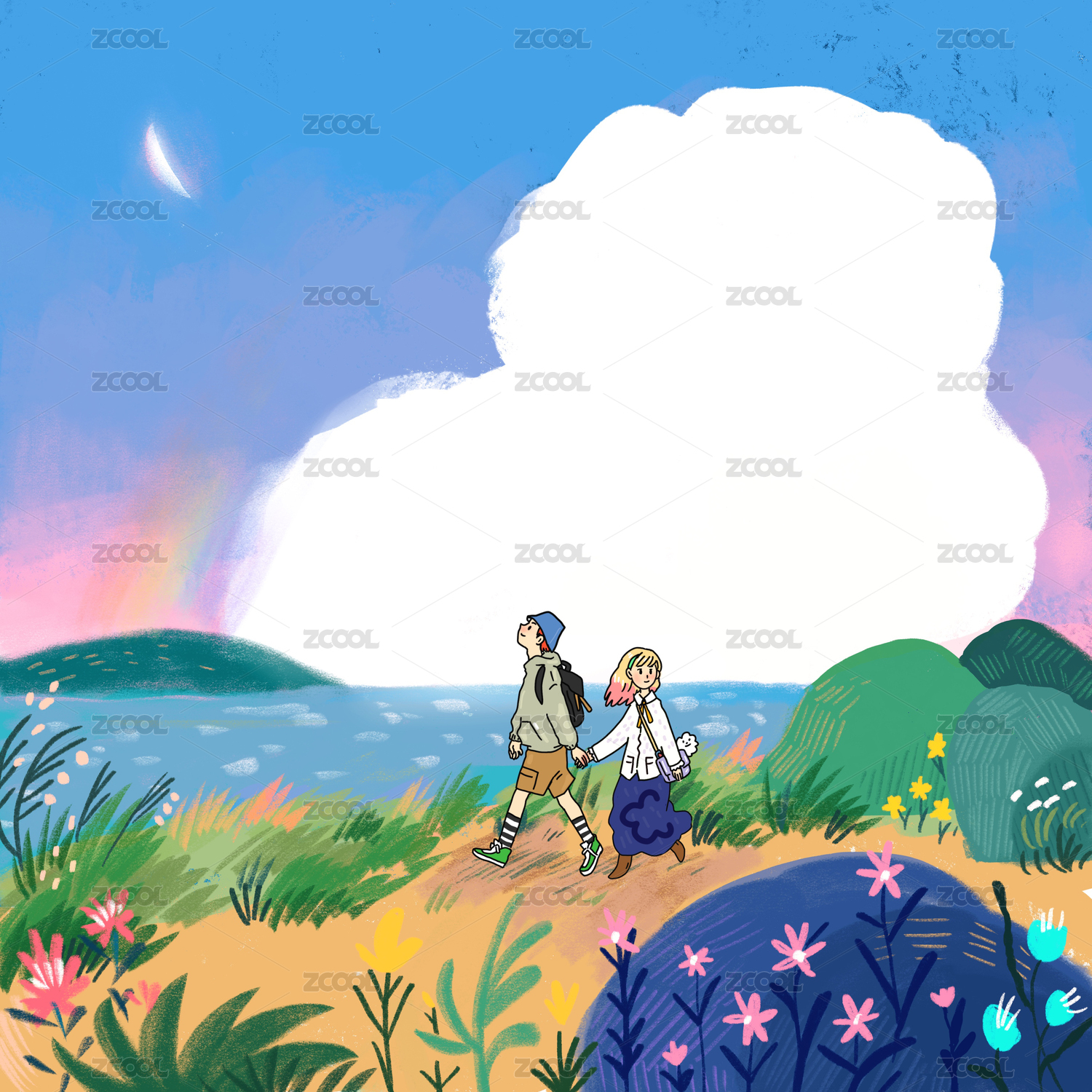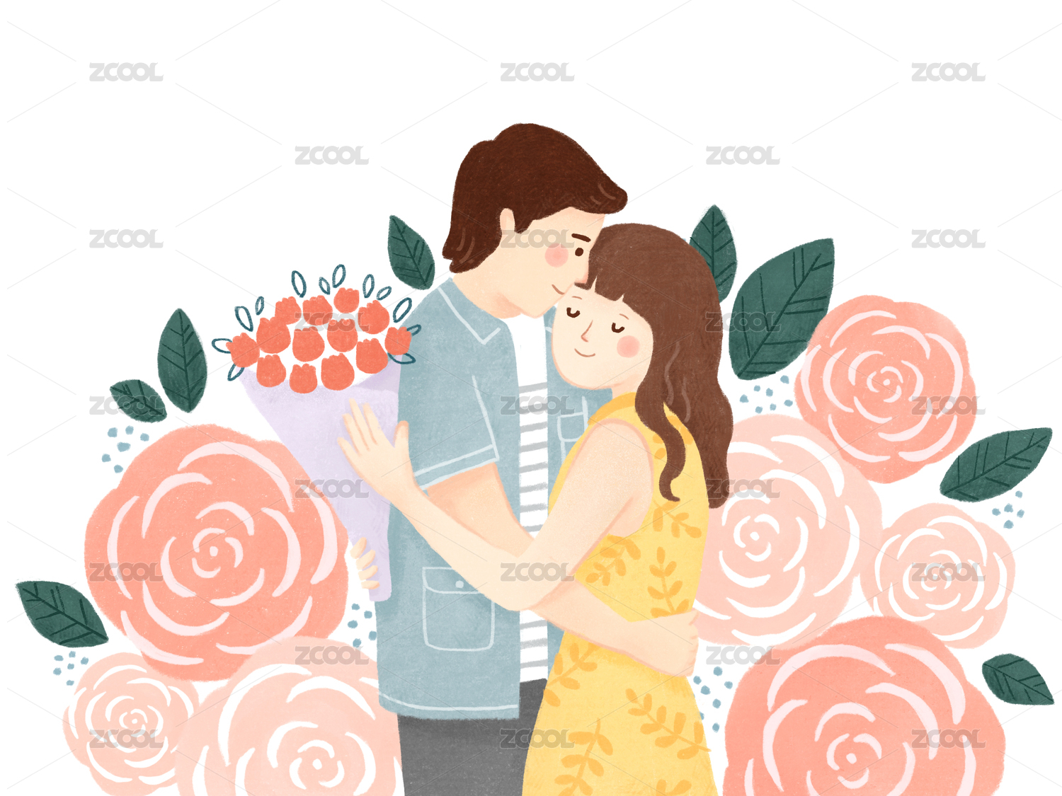 情人節(jié)七夕戀人擁抱玫瑰插畫(huà)