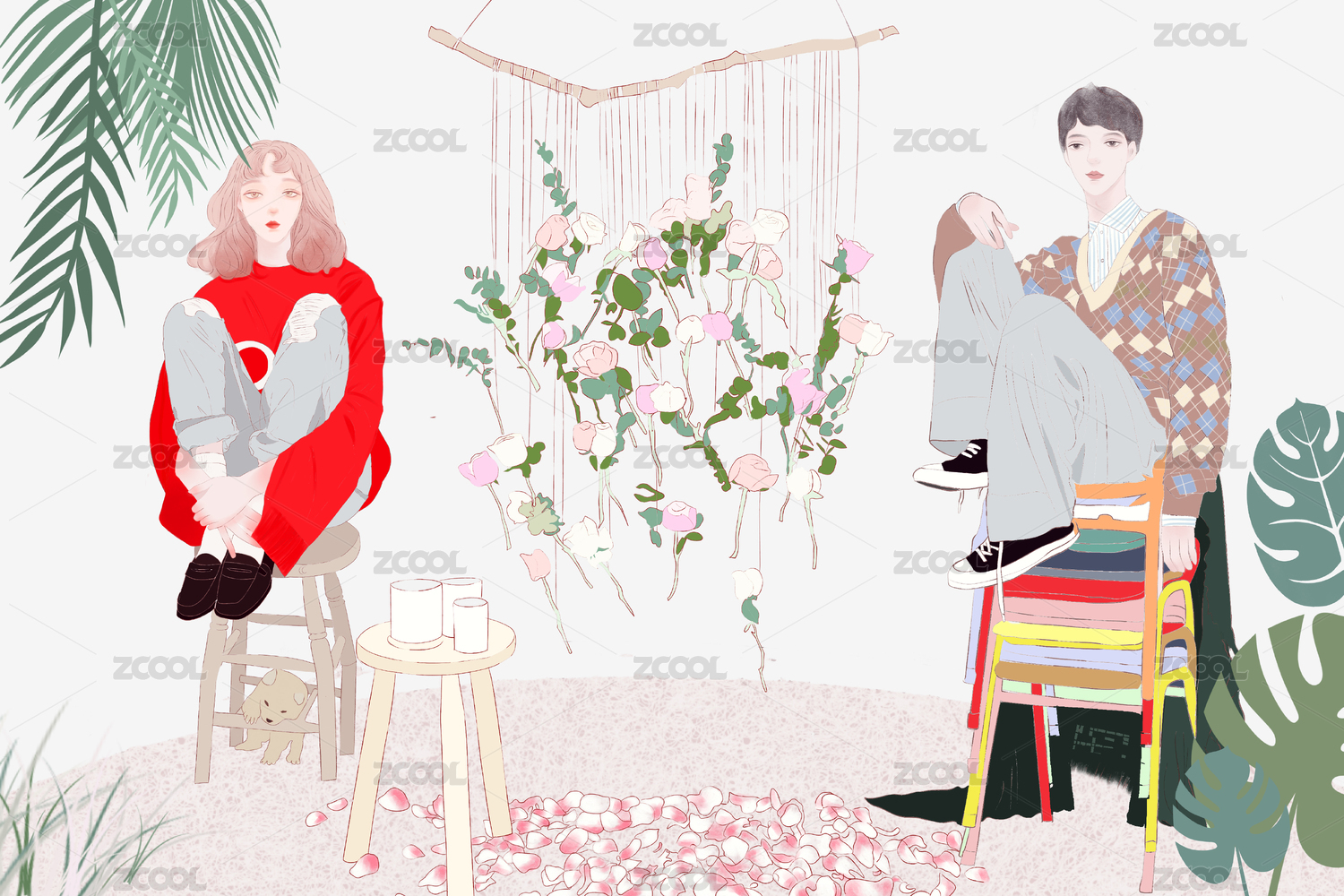 一對(duì)戀人慵懶地坐在沙發(fā)椅上