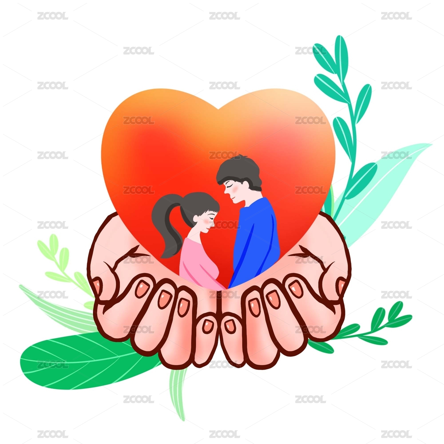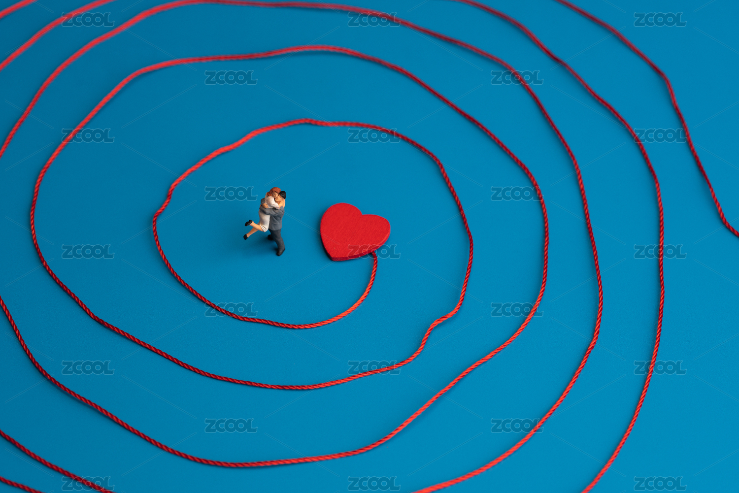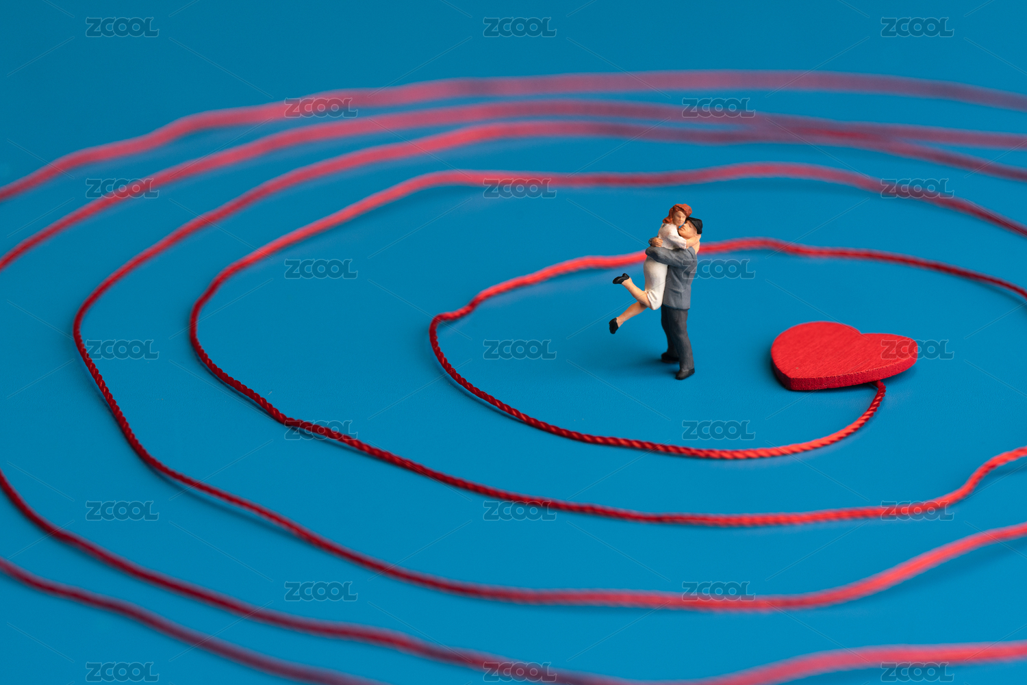 站在紅線環(huán)繞內(nèi)紅心處擁抱的戀人微縮創(chuàng)意