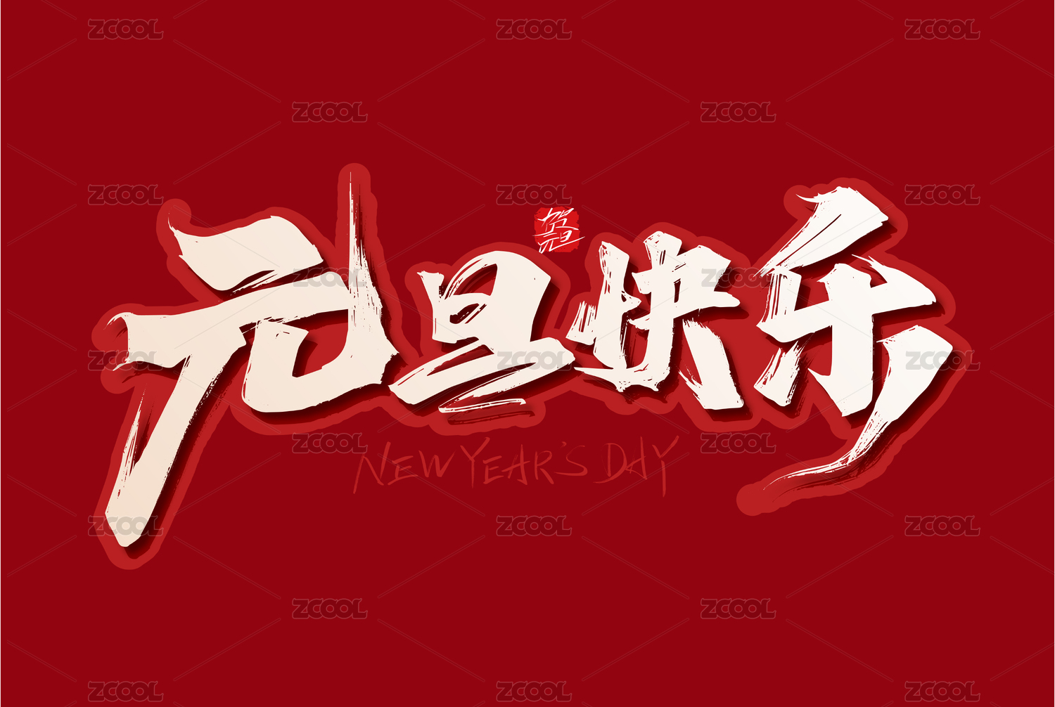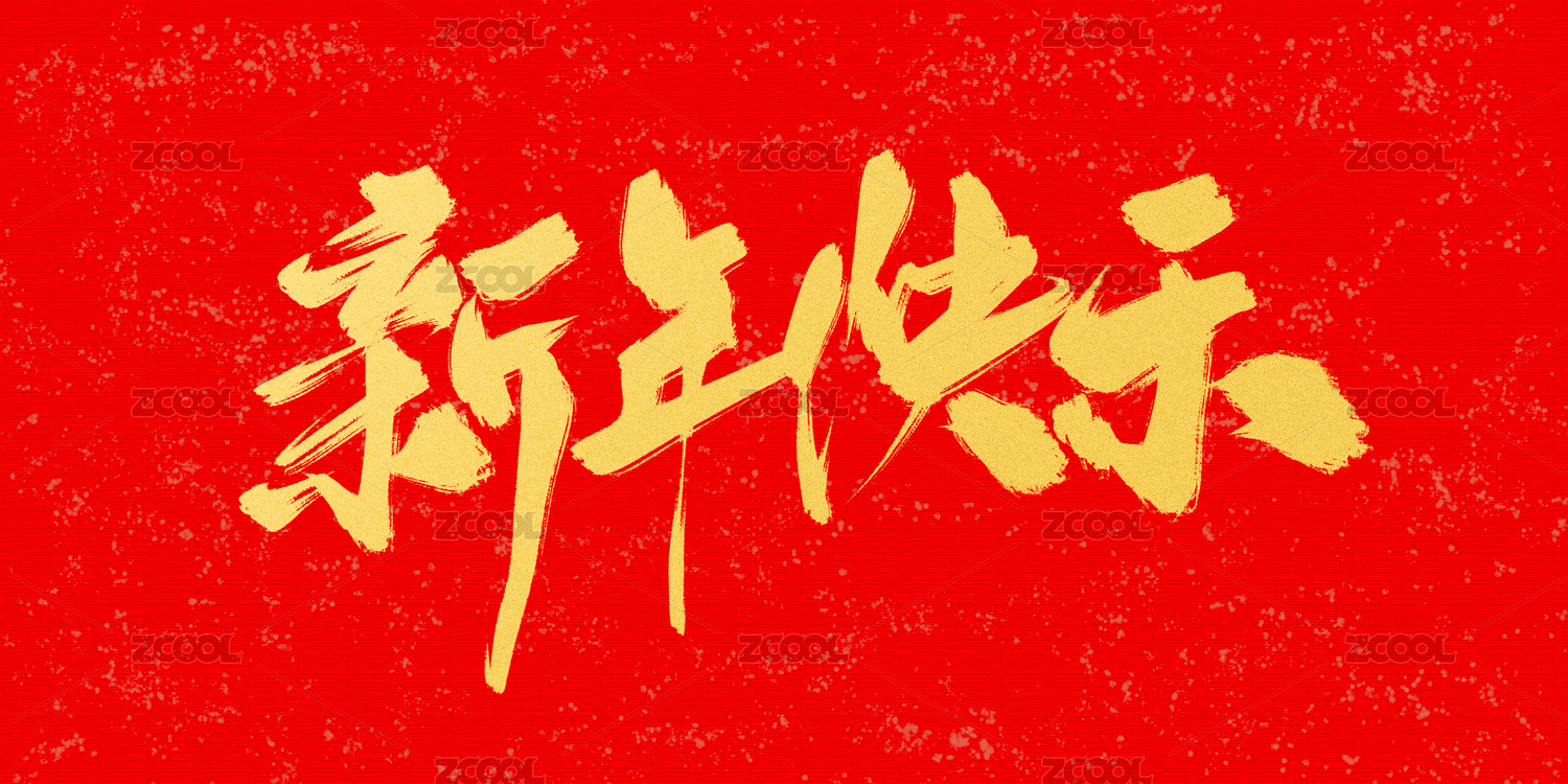 新年快樂(lè)手寫(xiě)字體毛筆水墨