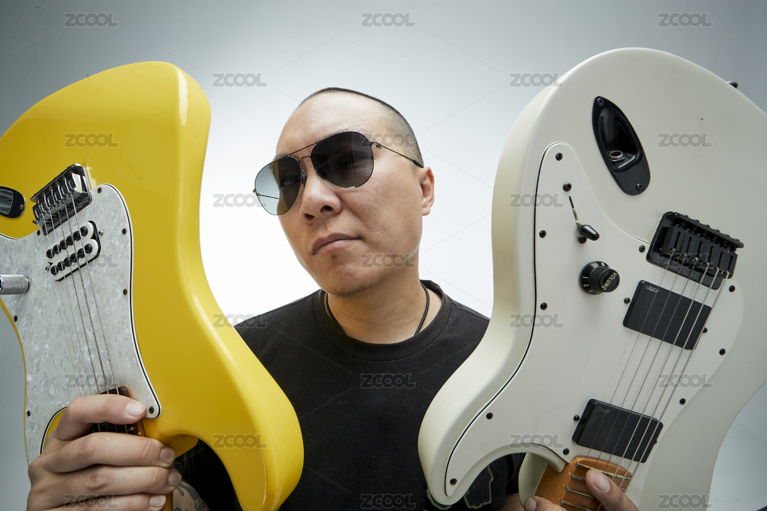 手持電吉他展示演奏的亞洲男性搖滾樂(lè)手人像