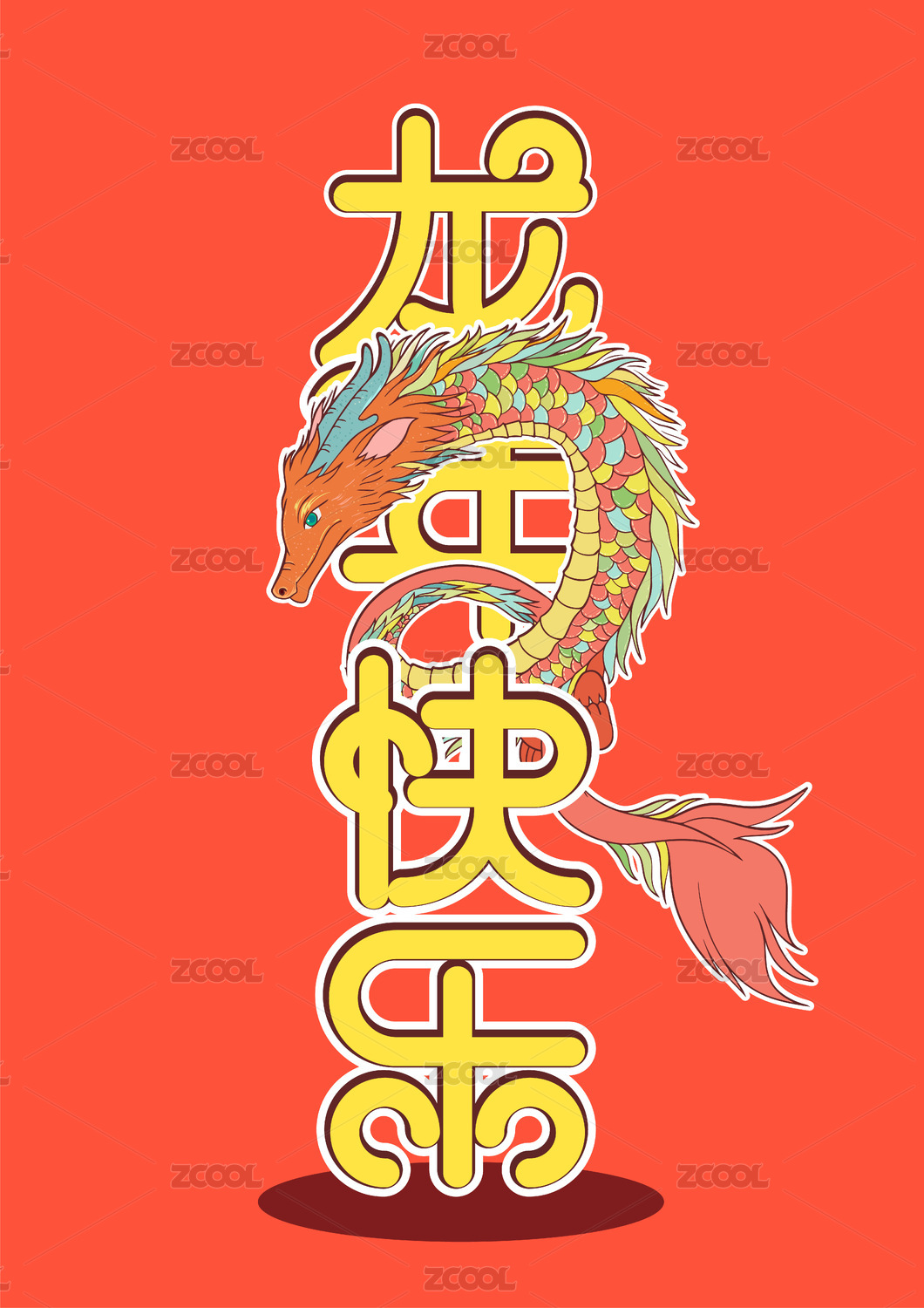 2024年龍年快樂(lè)手寫(xiě)漢字藝術(shù)字矢量插畫(huà)