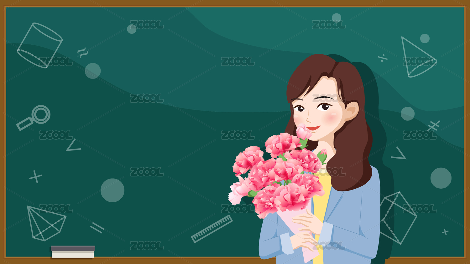 教師節(jié)快樂(lè)手捧花老師插畫(huà)矢量圖