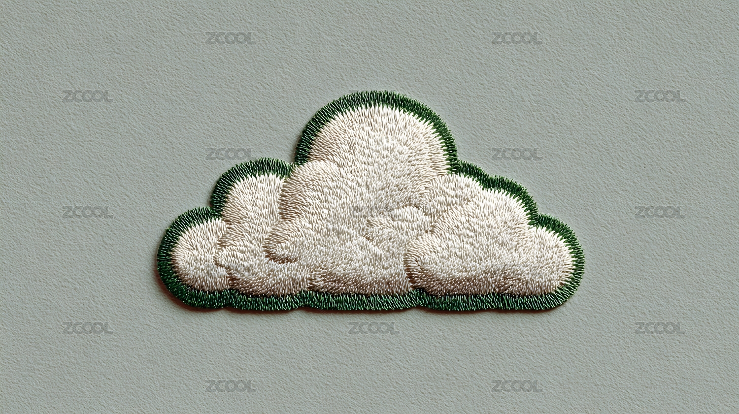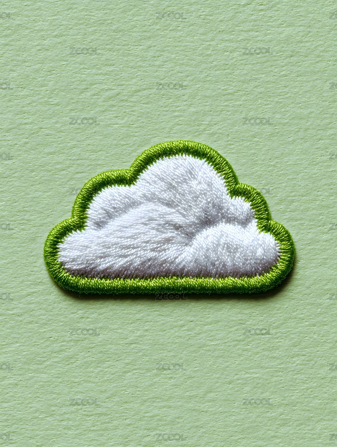綠邊白色云朵刺繡布貼