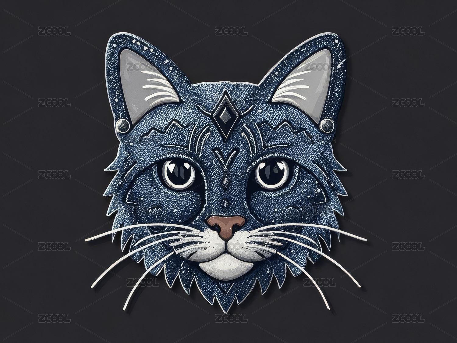 貓頭像牛仔布貼