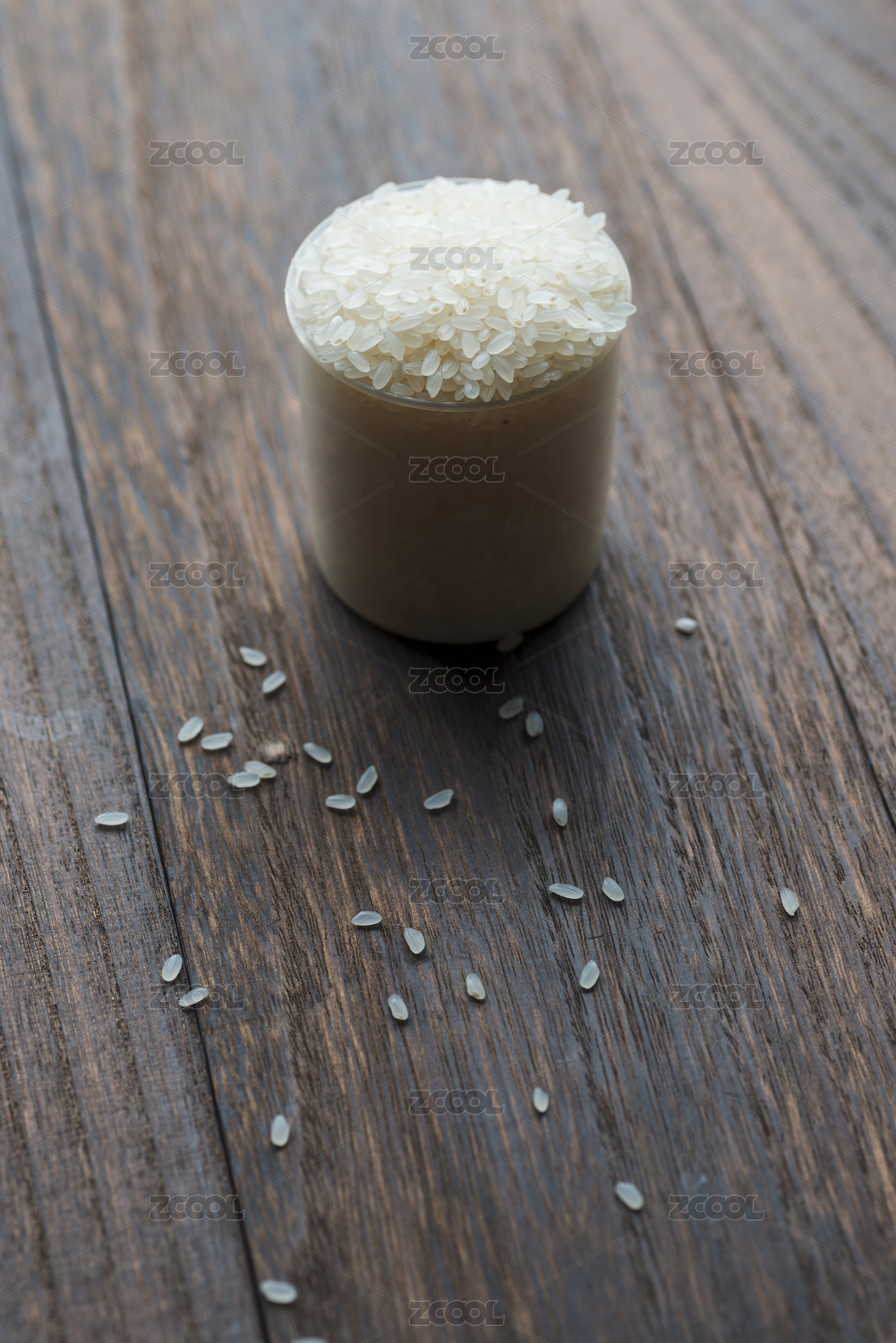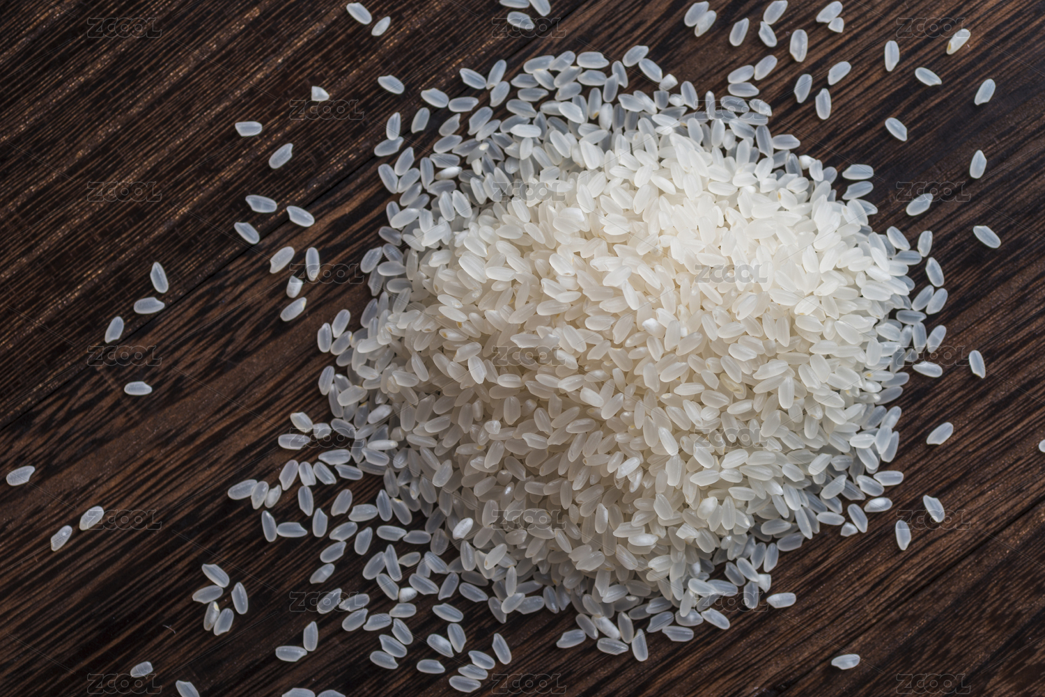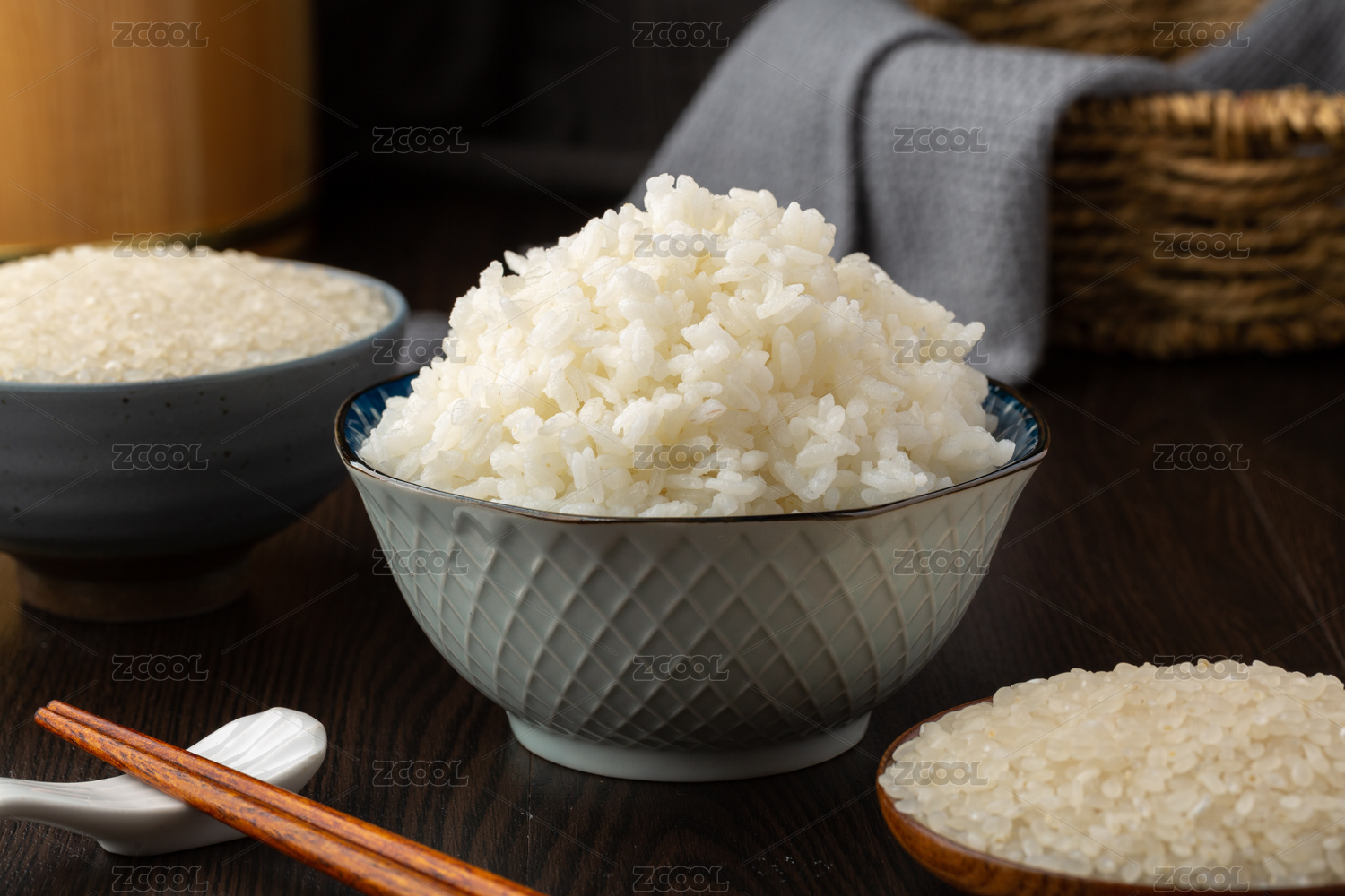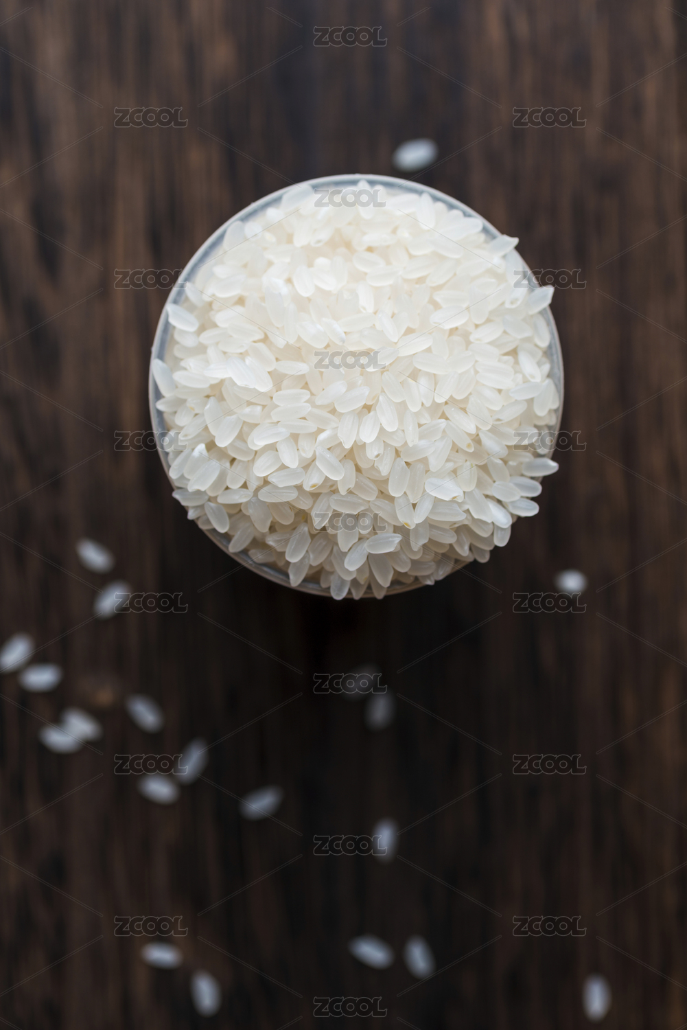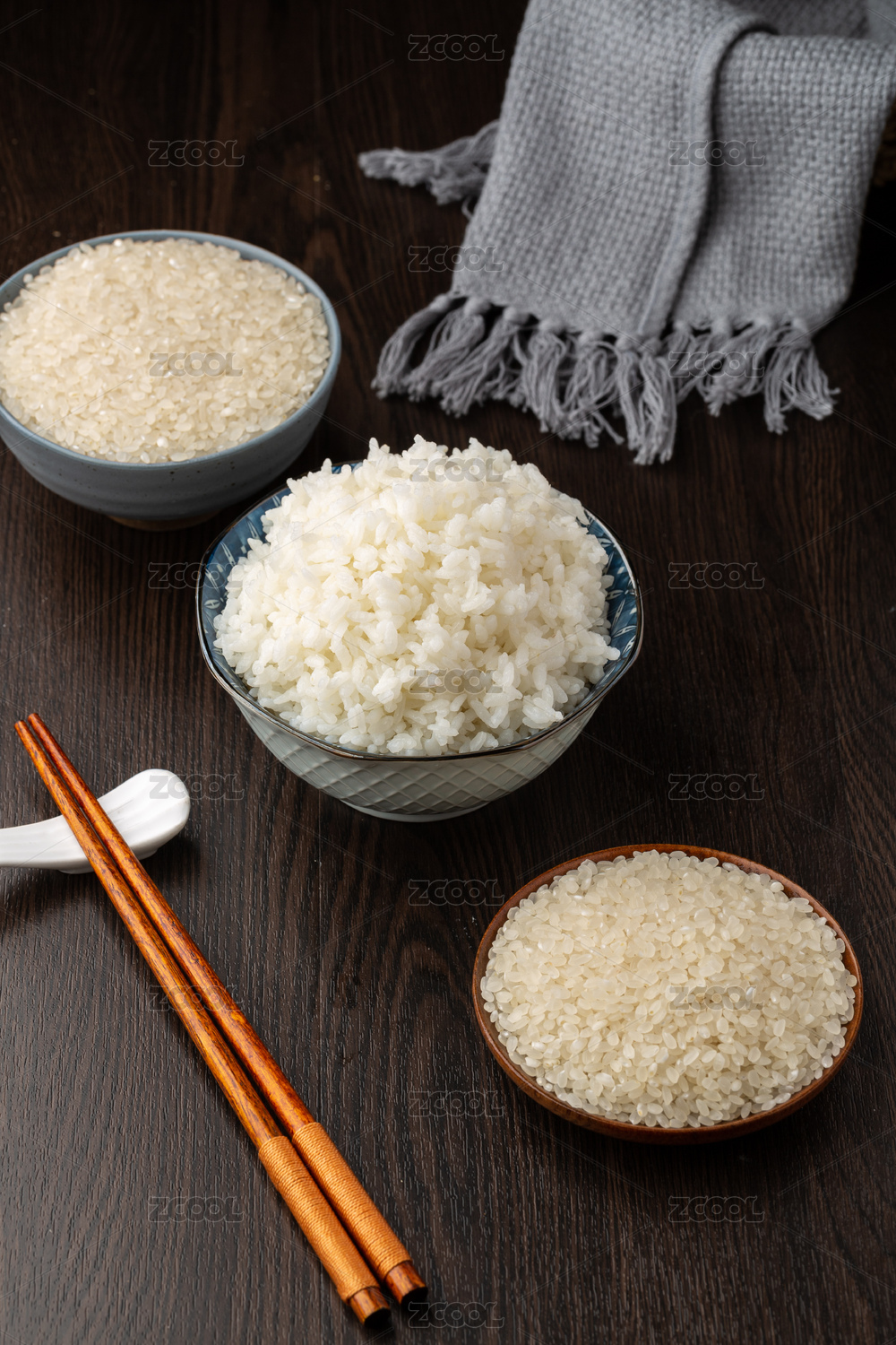擺在木桌上的粳米做的米飯