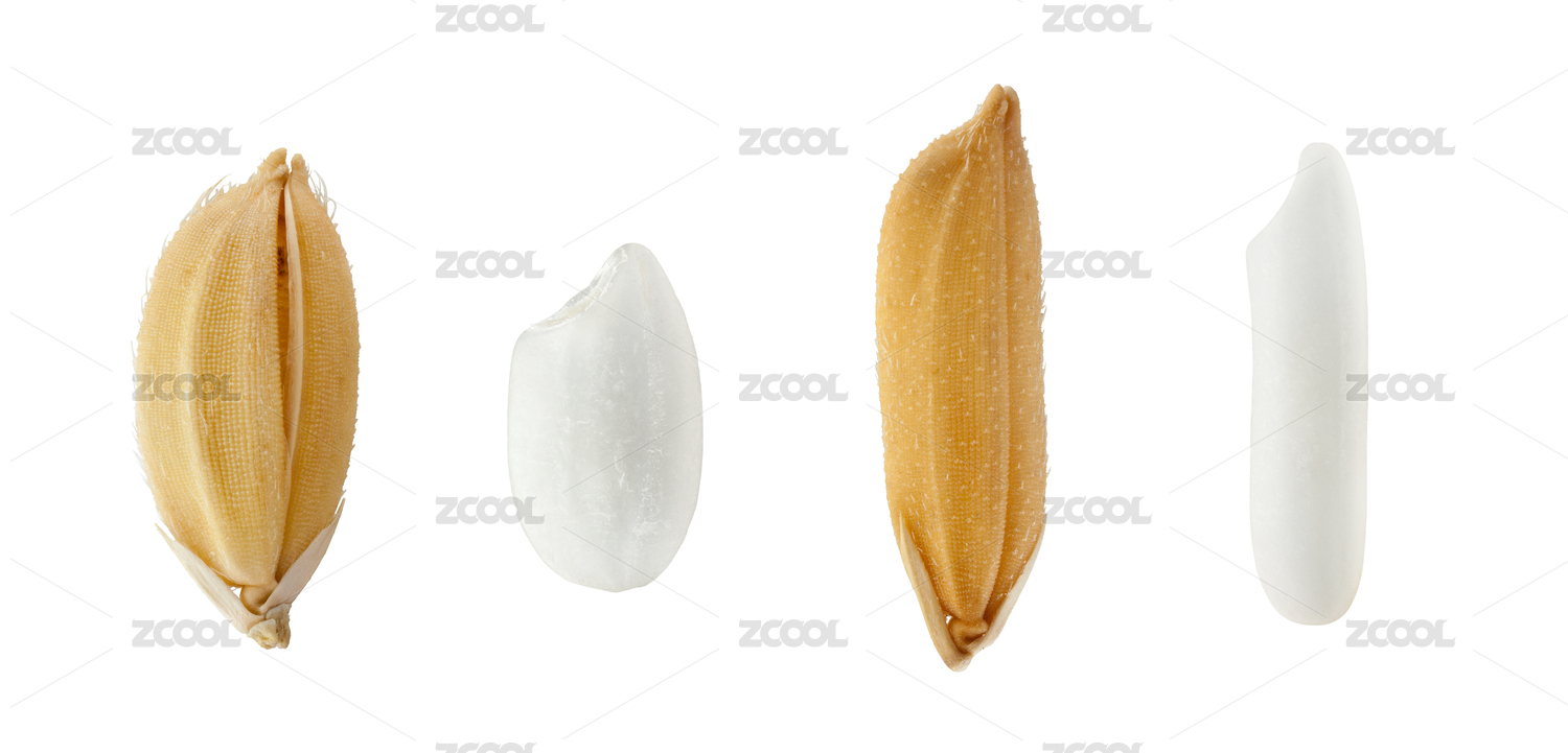 白底上粳米和秈米以及谷粒之間的區(qū)別素材