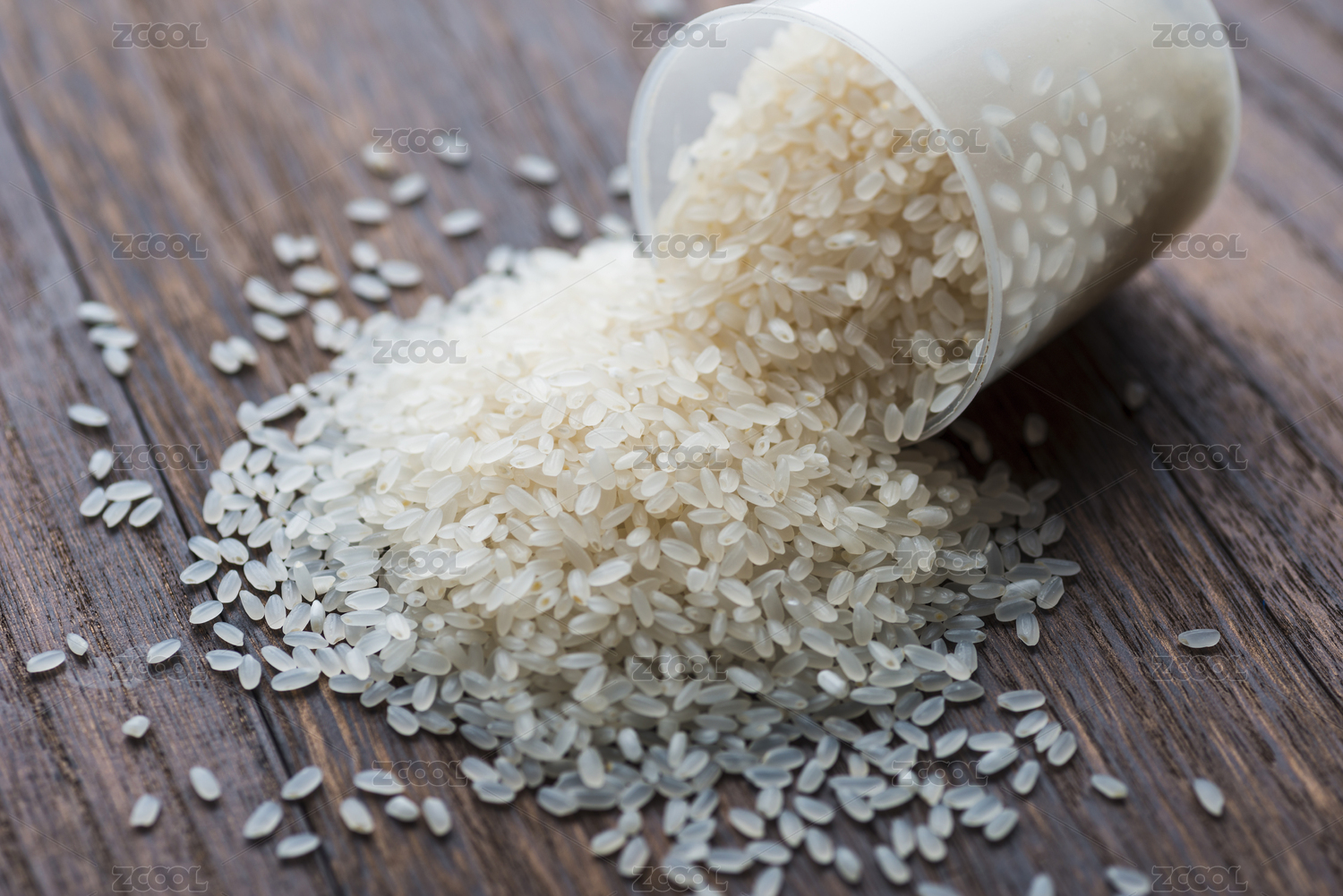粳米從袋子里流出到木盤子里
