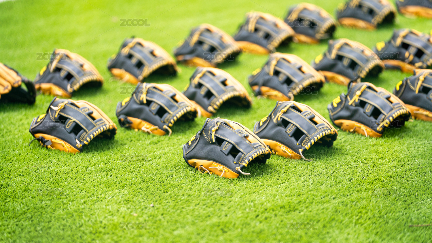 草坪上的棒球手套特寫