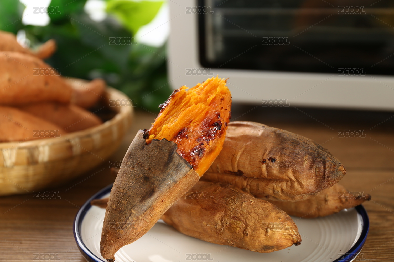 白底上放著半節(jié)黃心蜜薯