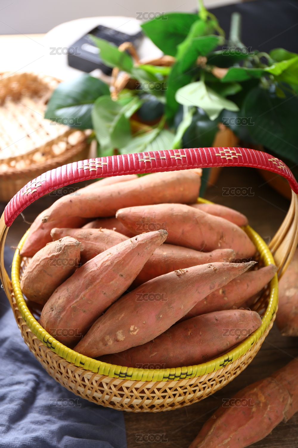 裝在籃子里的新鮮蜜薯