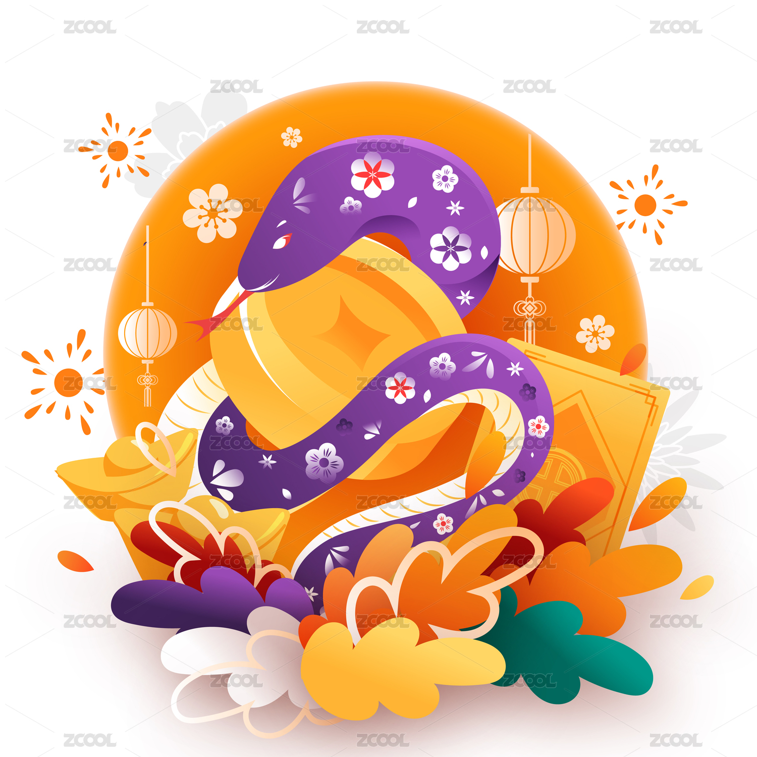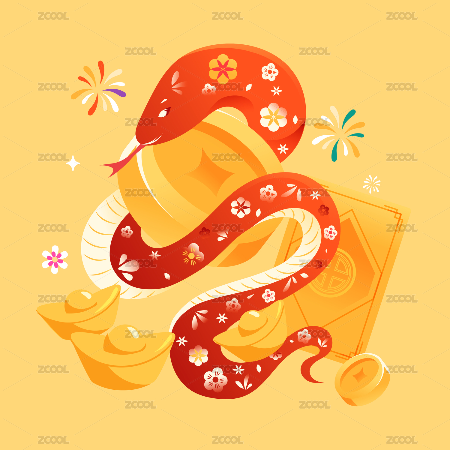 春節(jié)國潮紅包封面 | 蛇年卡通形象設(shè)計