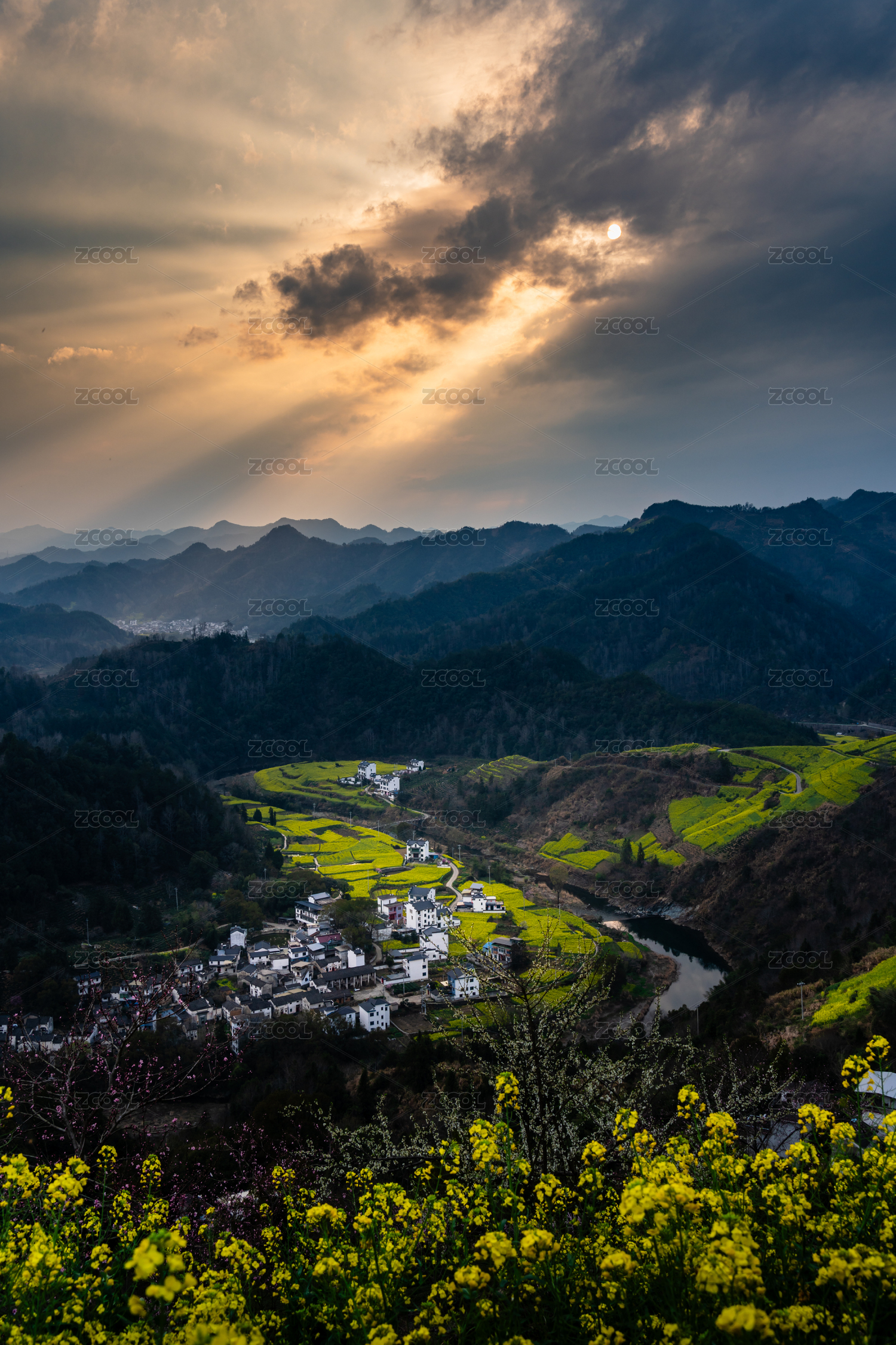 中國安徽石潭村花海日落