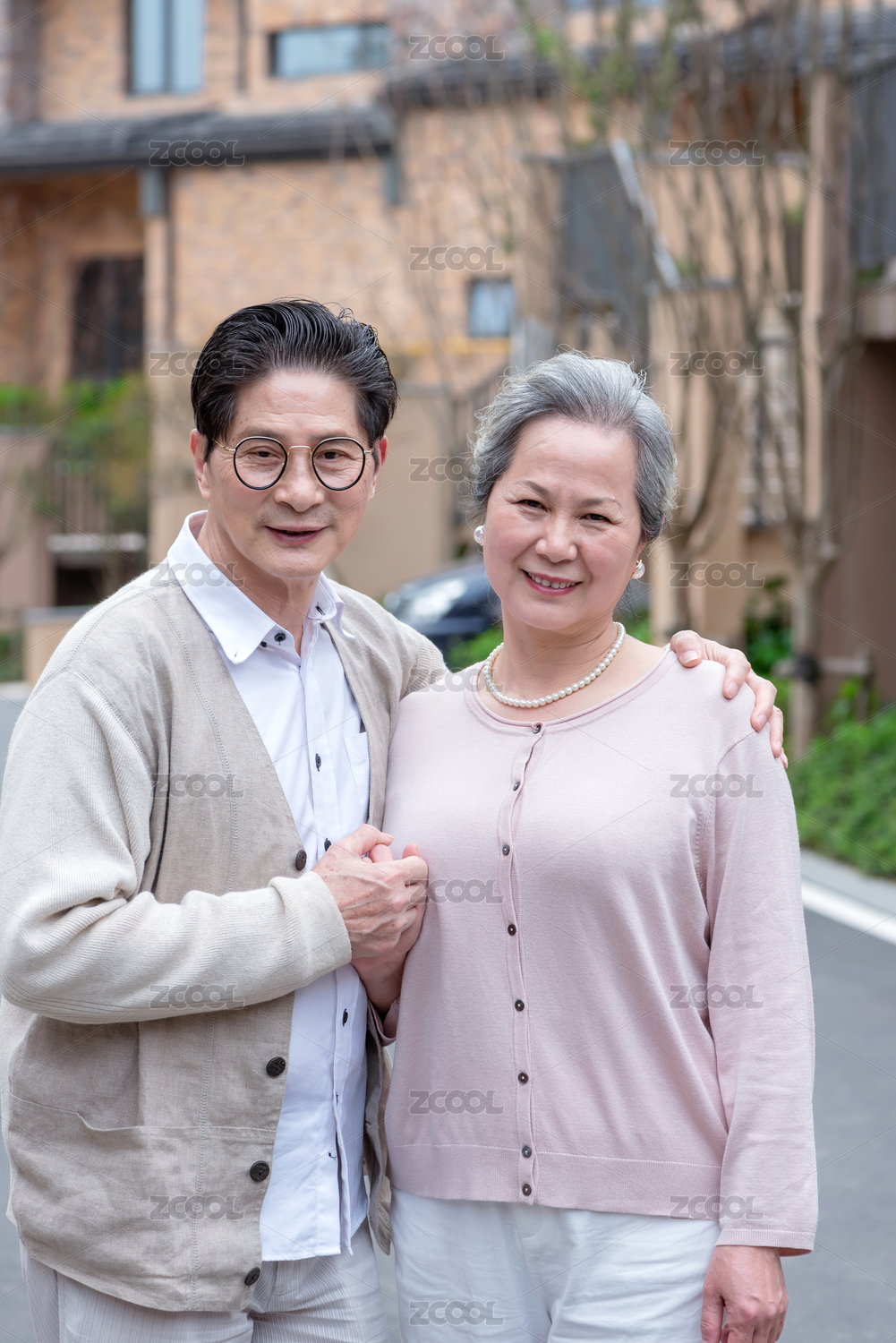 一對正在散步的亞洲老年夫婦
