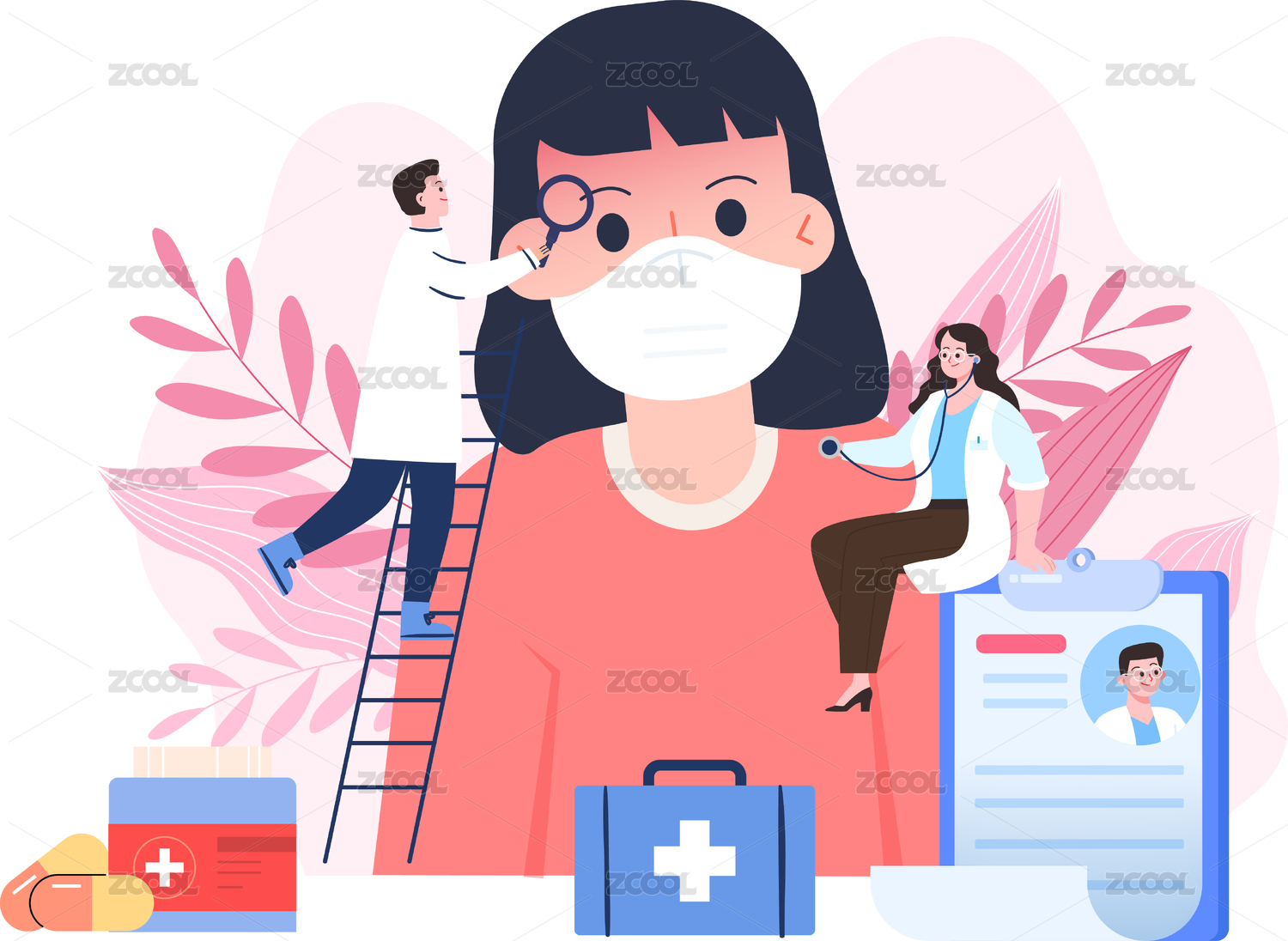 甲流感冒醫(yī)療矢量插畫