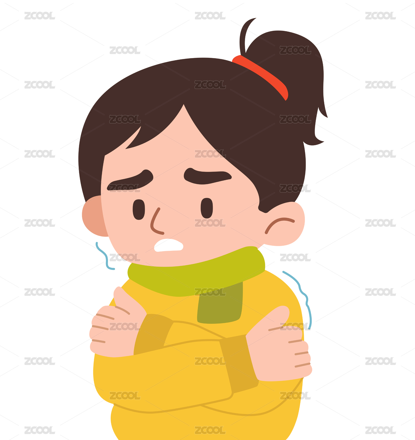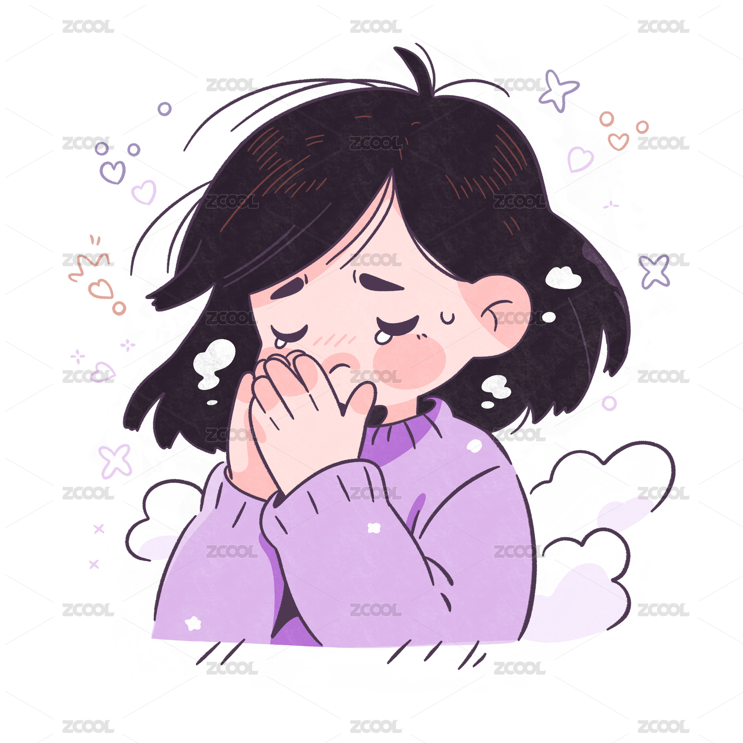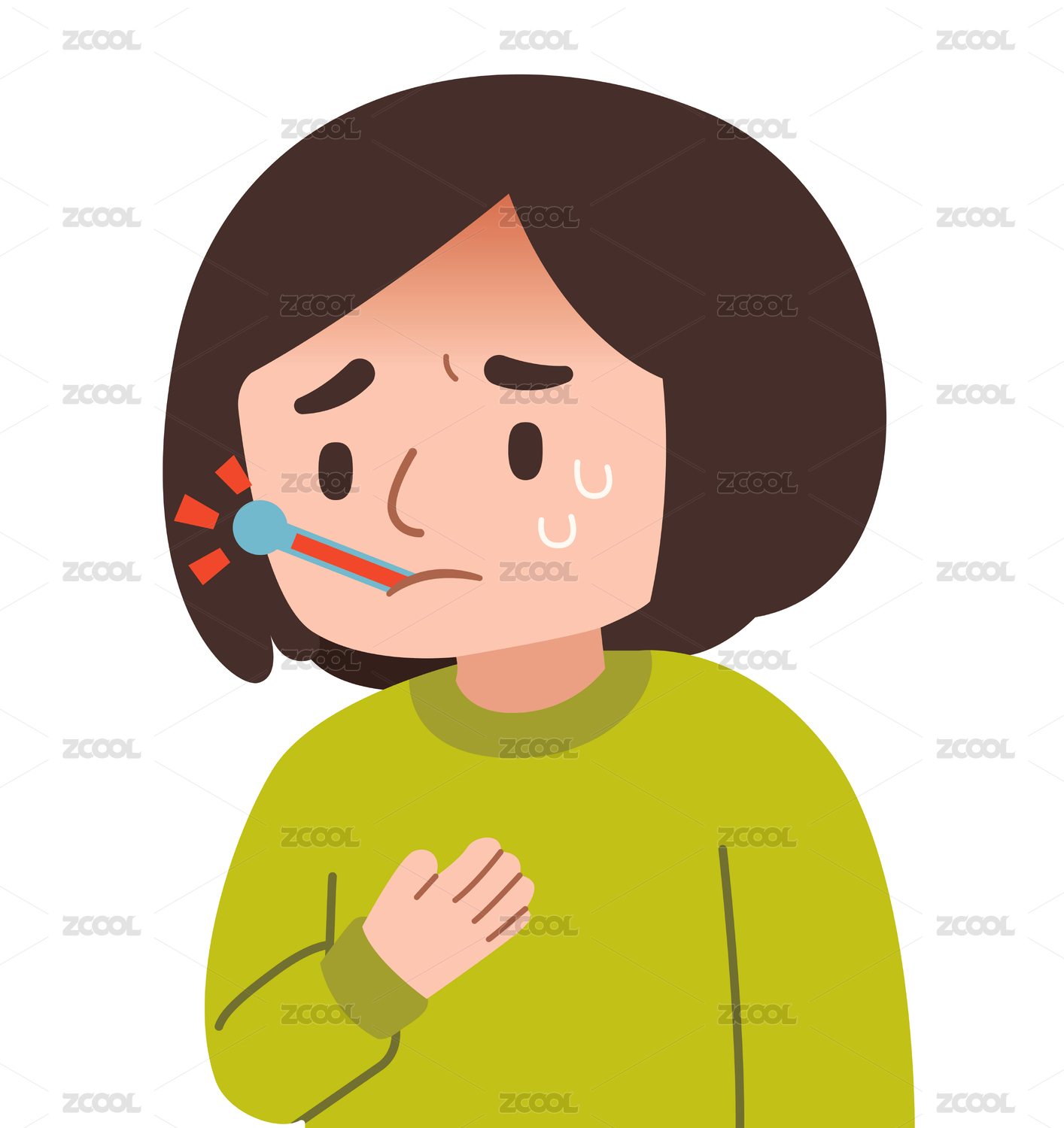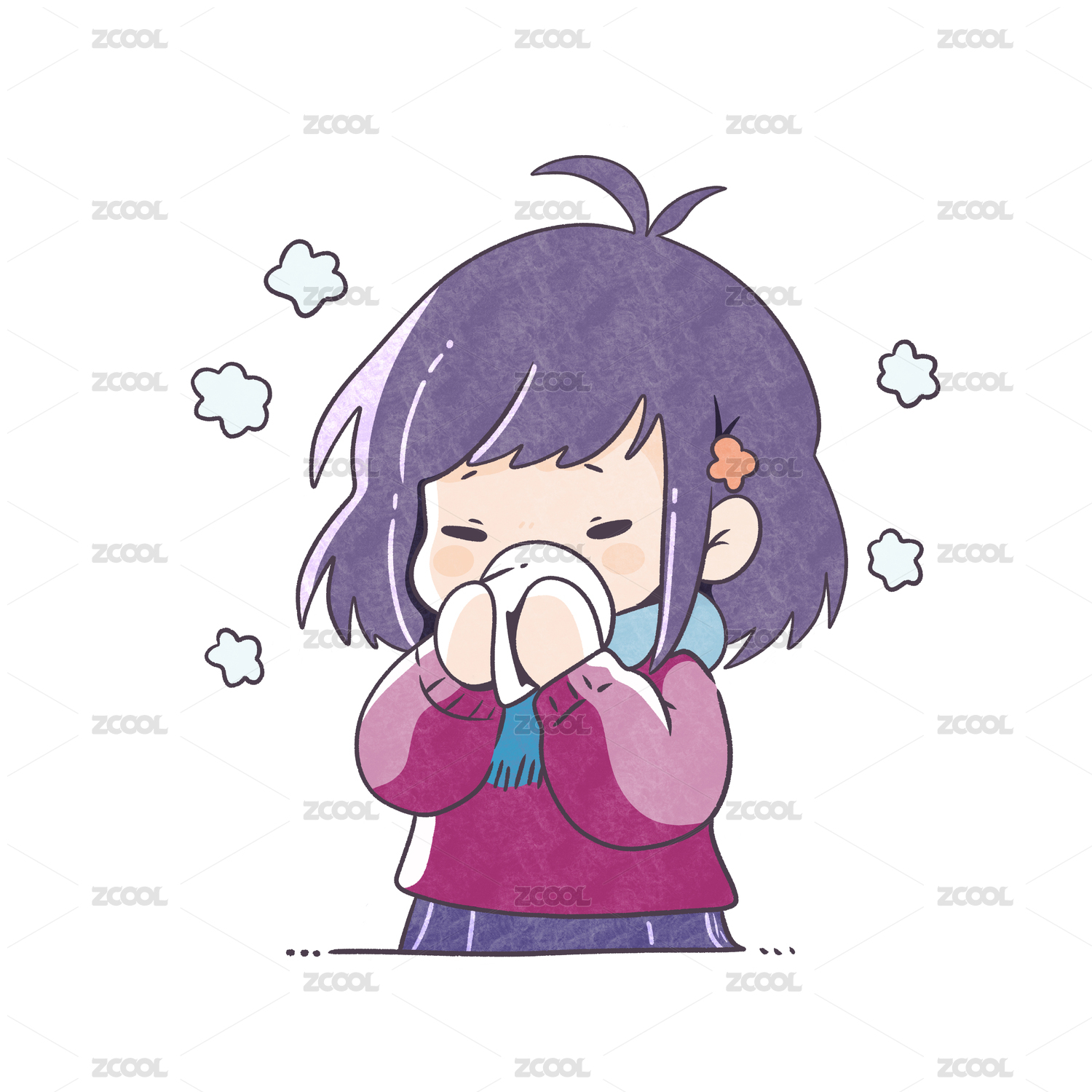 流感感冒發(fā)燒打噴嚏生病的女孩卡通插畫貼紙