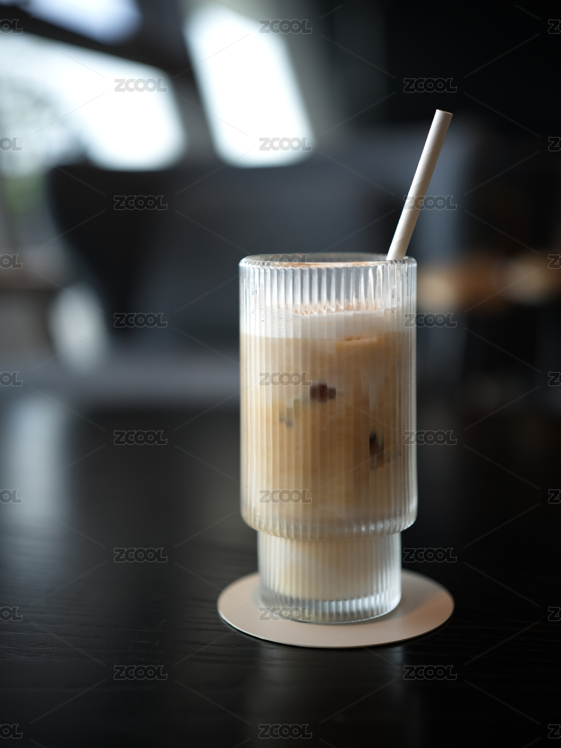 一杯裝在透明杯中的冰咖啡帶有吸管和奶蓋