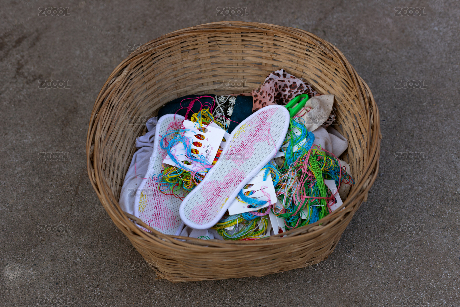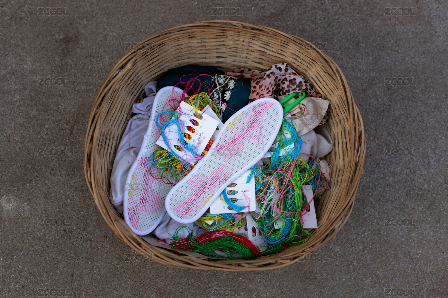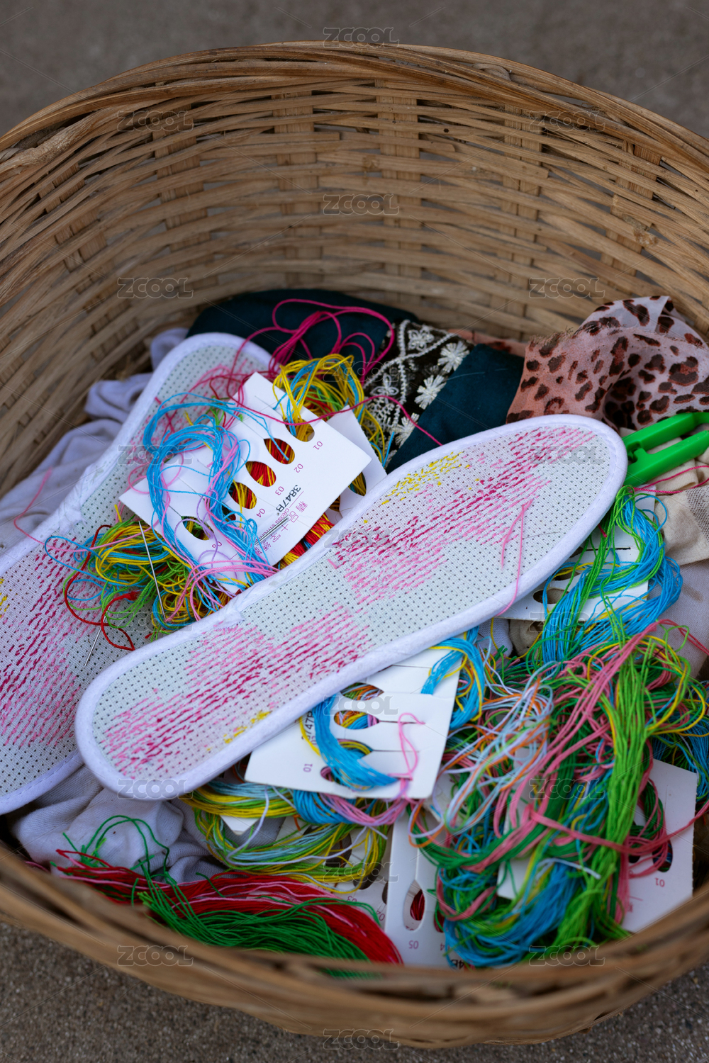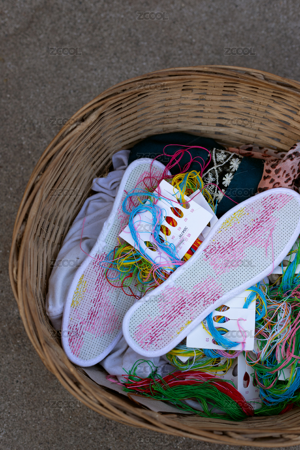 竹筐里的傳統(tǒng)手工品繡花鞋墊