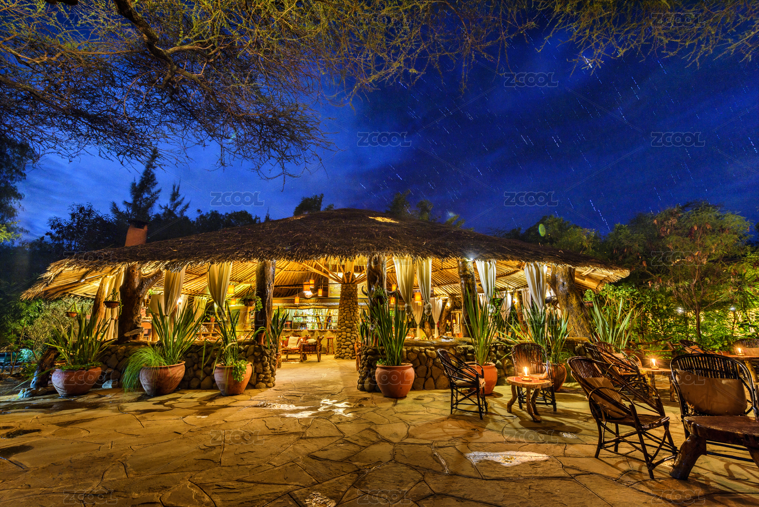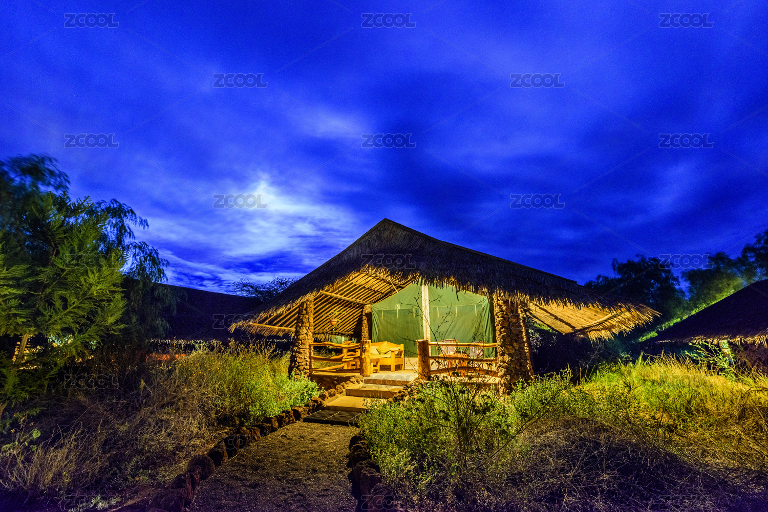 非洲肯尼亞安博塞利帳篷酒店夜景