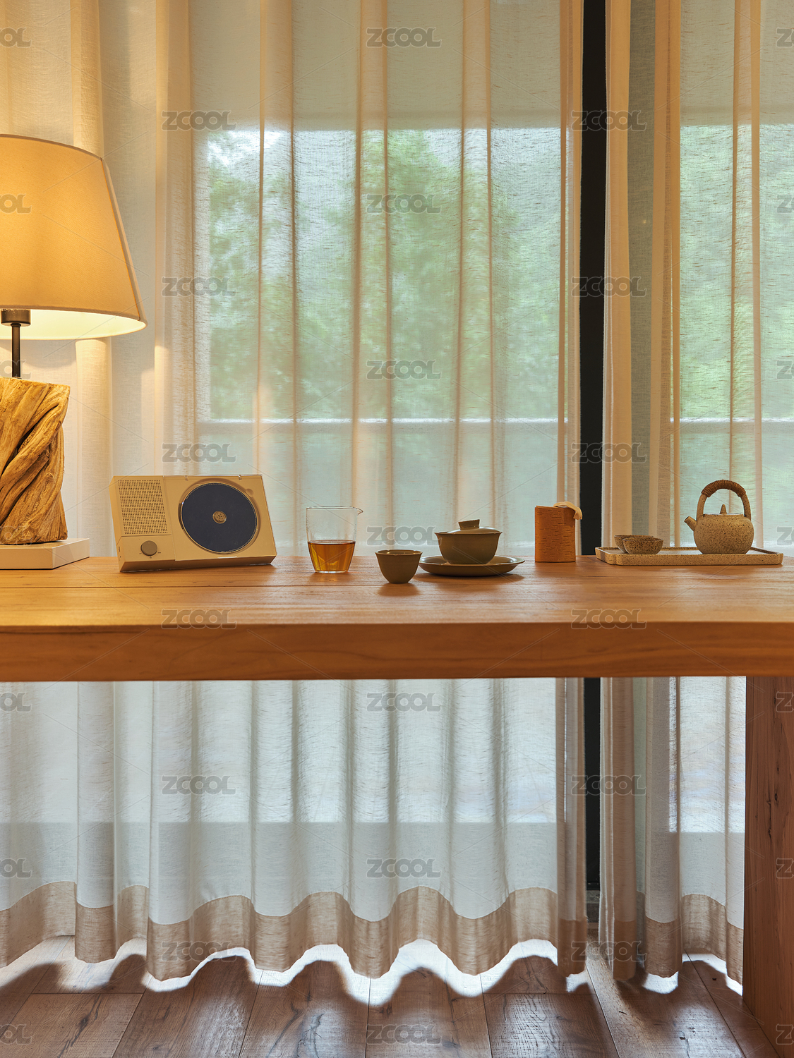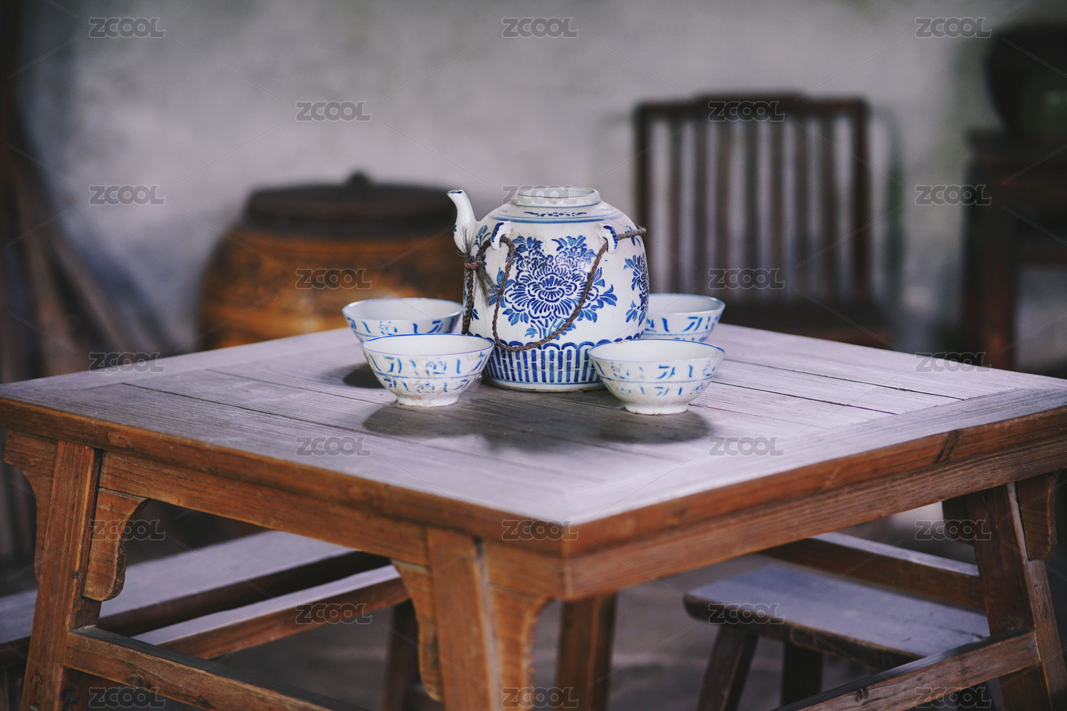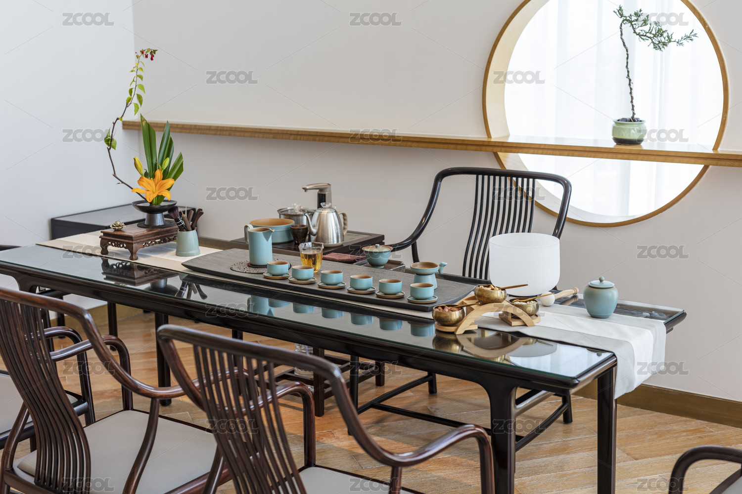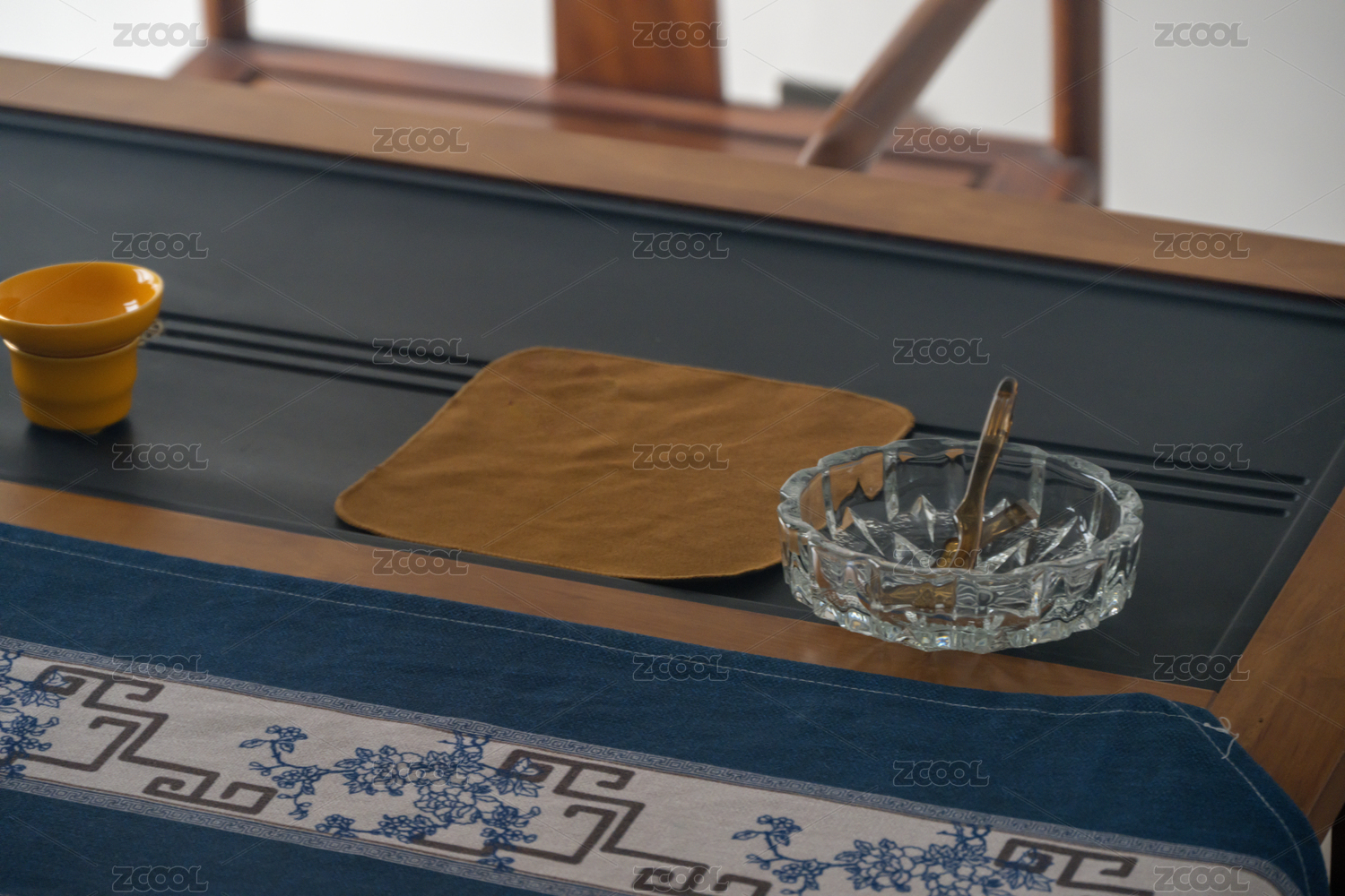 深色背景前榫卯結(jié)構(gòu)的中式家具茶幾