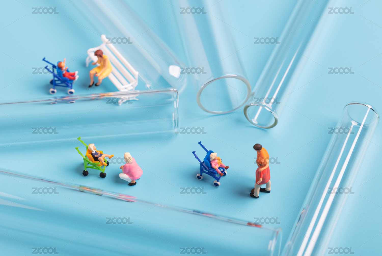 微縮創(chuàng)意試管旁的嬰兒與幸福家庭