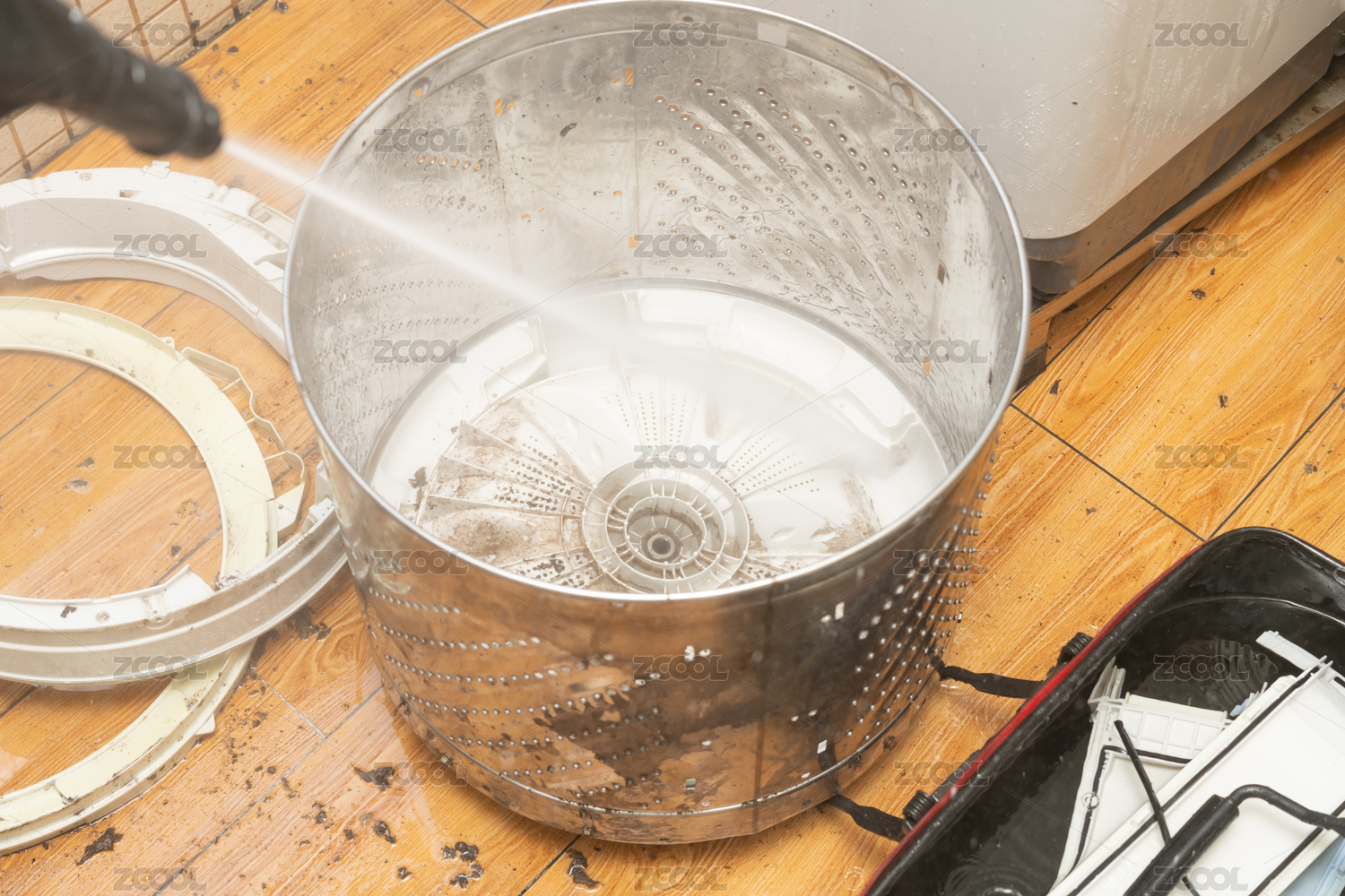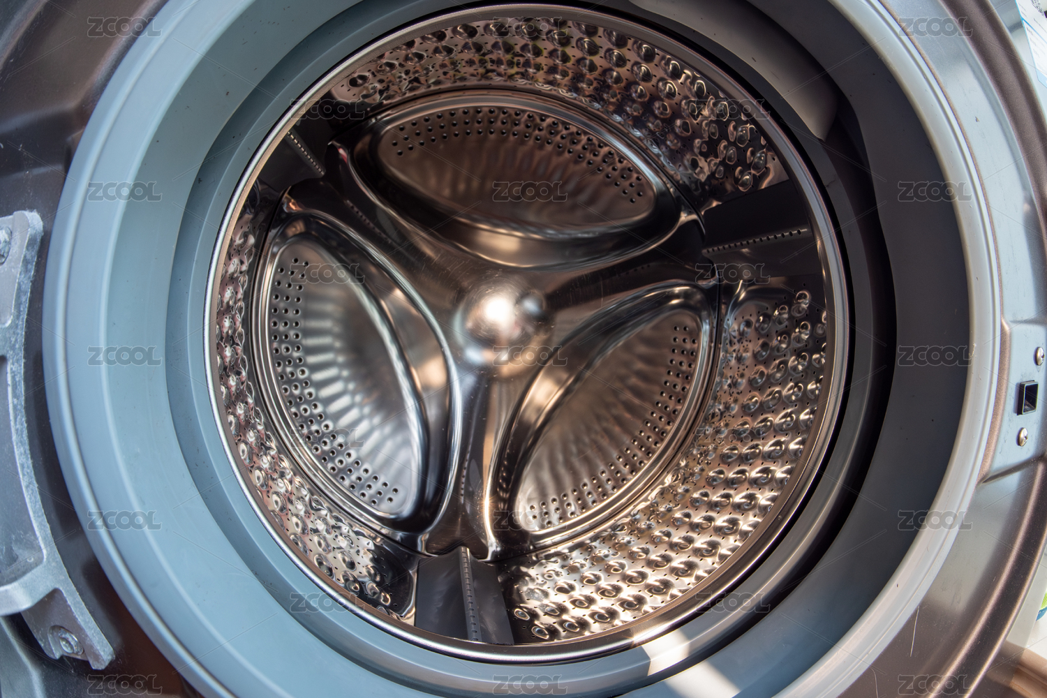 滾筒洗衣機內部滾筒特寫,清潔用品或高效能
