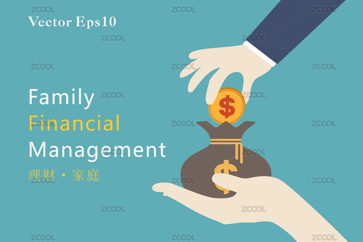 家庭理財概念創(chuàng)意,矢量插畫——家庭儲蓄、投資、計劃、財富管理