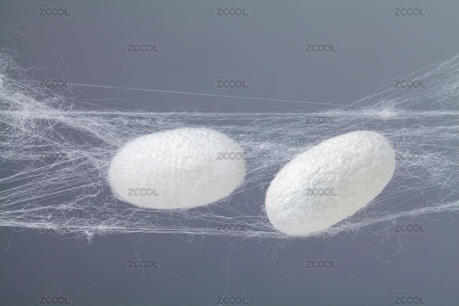 黑背景中被蠶絲纏住的蠶繭特寫(xiě)