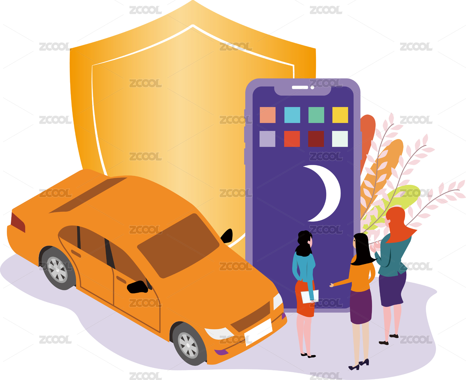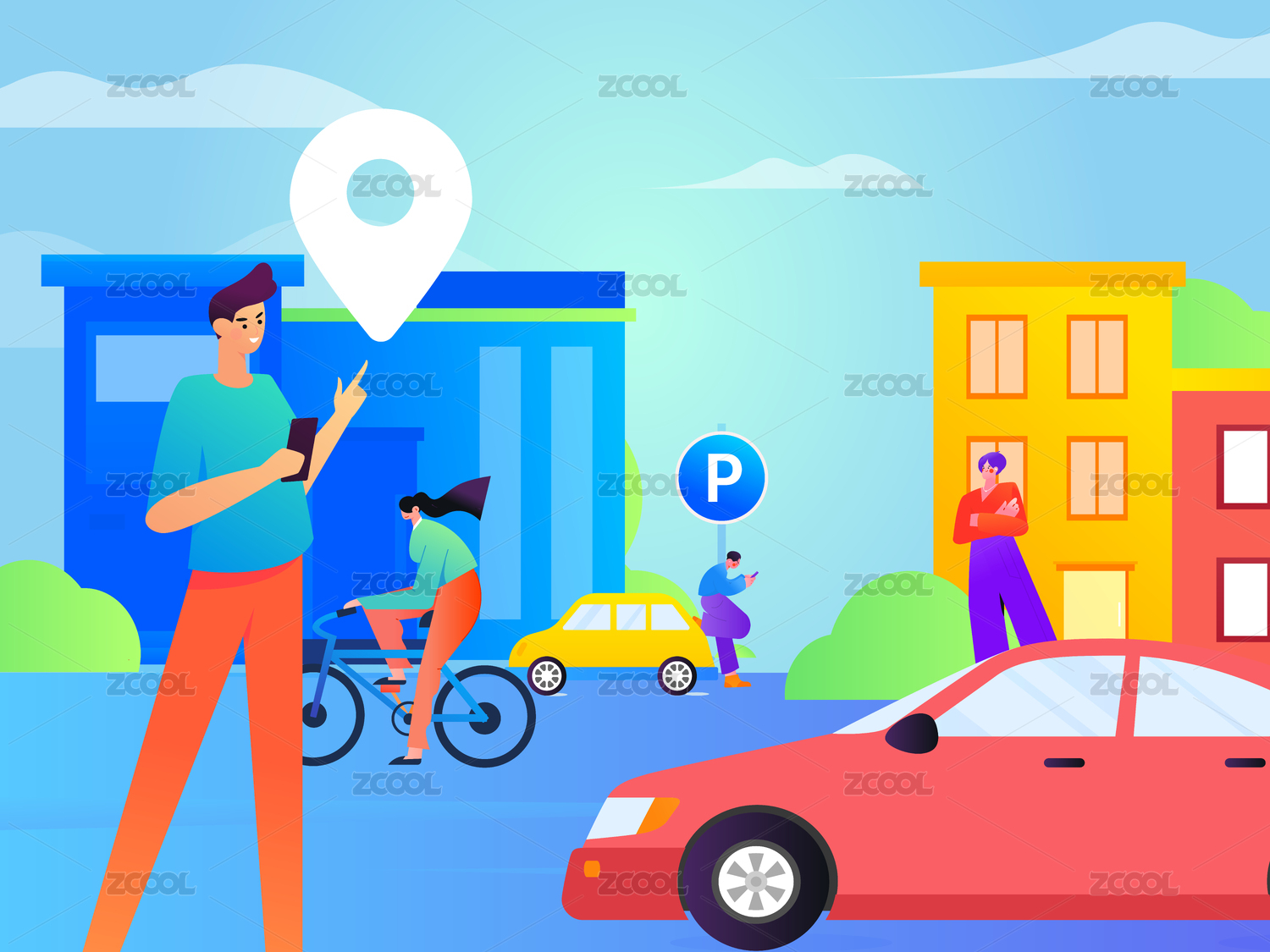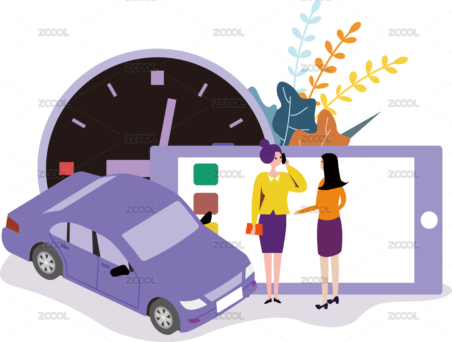 共享下的出行叫車服務(wù)矢量插畫