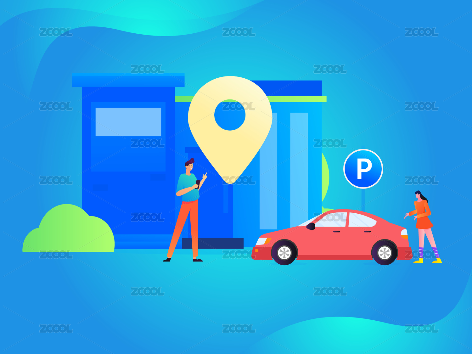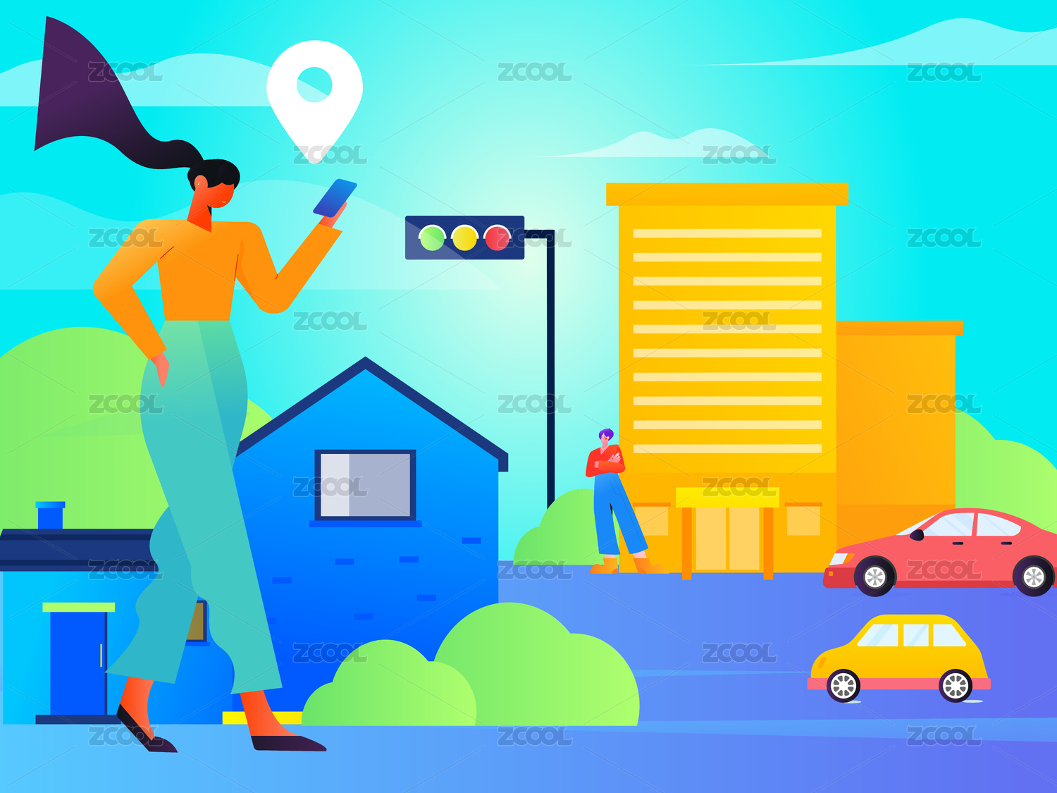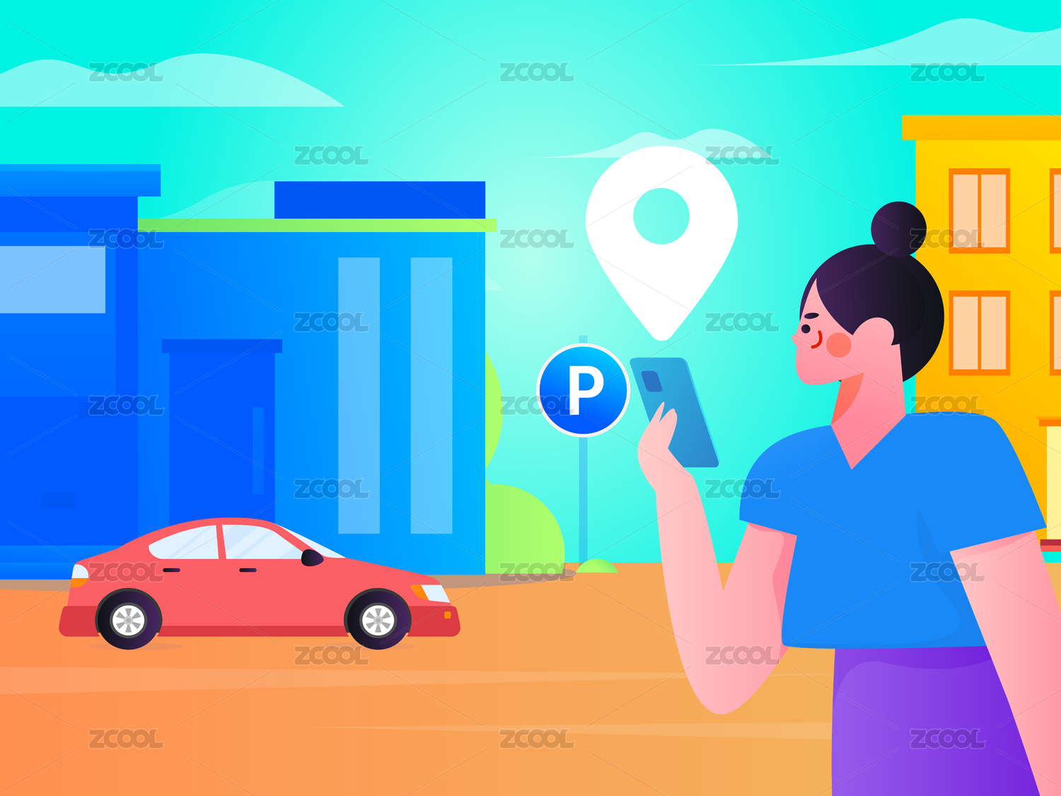 共享下的出行叫車服務(wù)矢量插畫