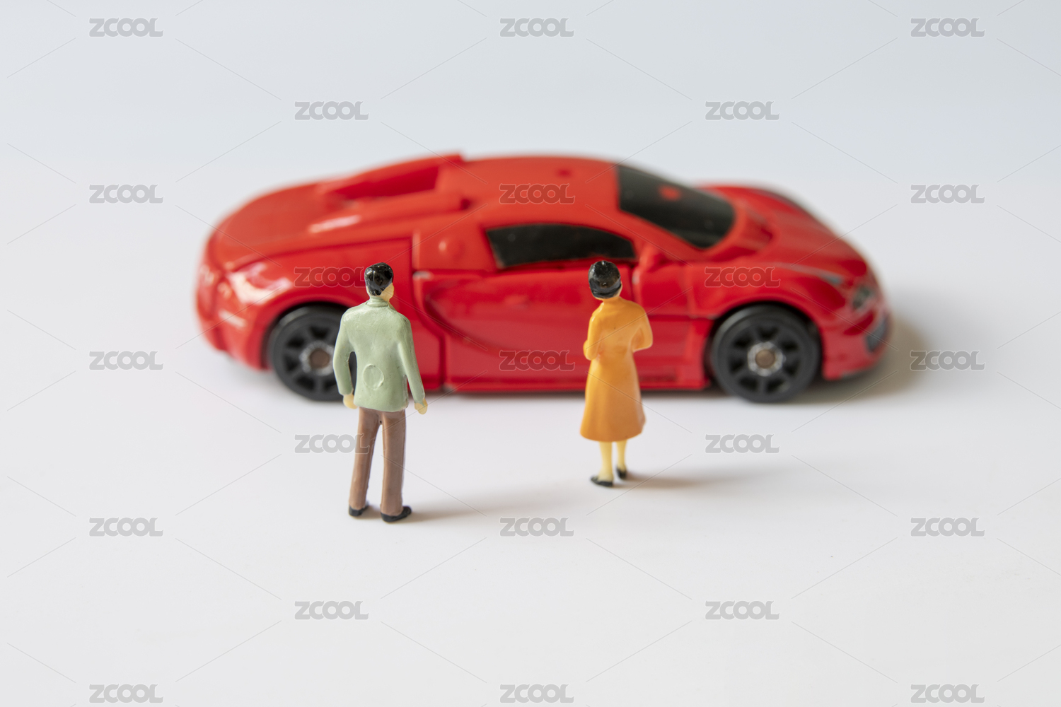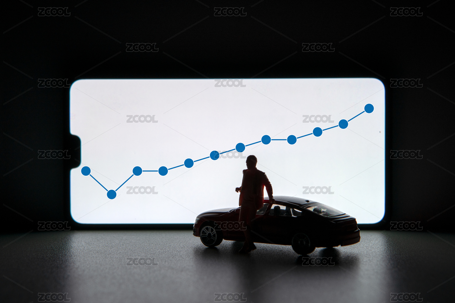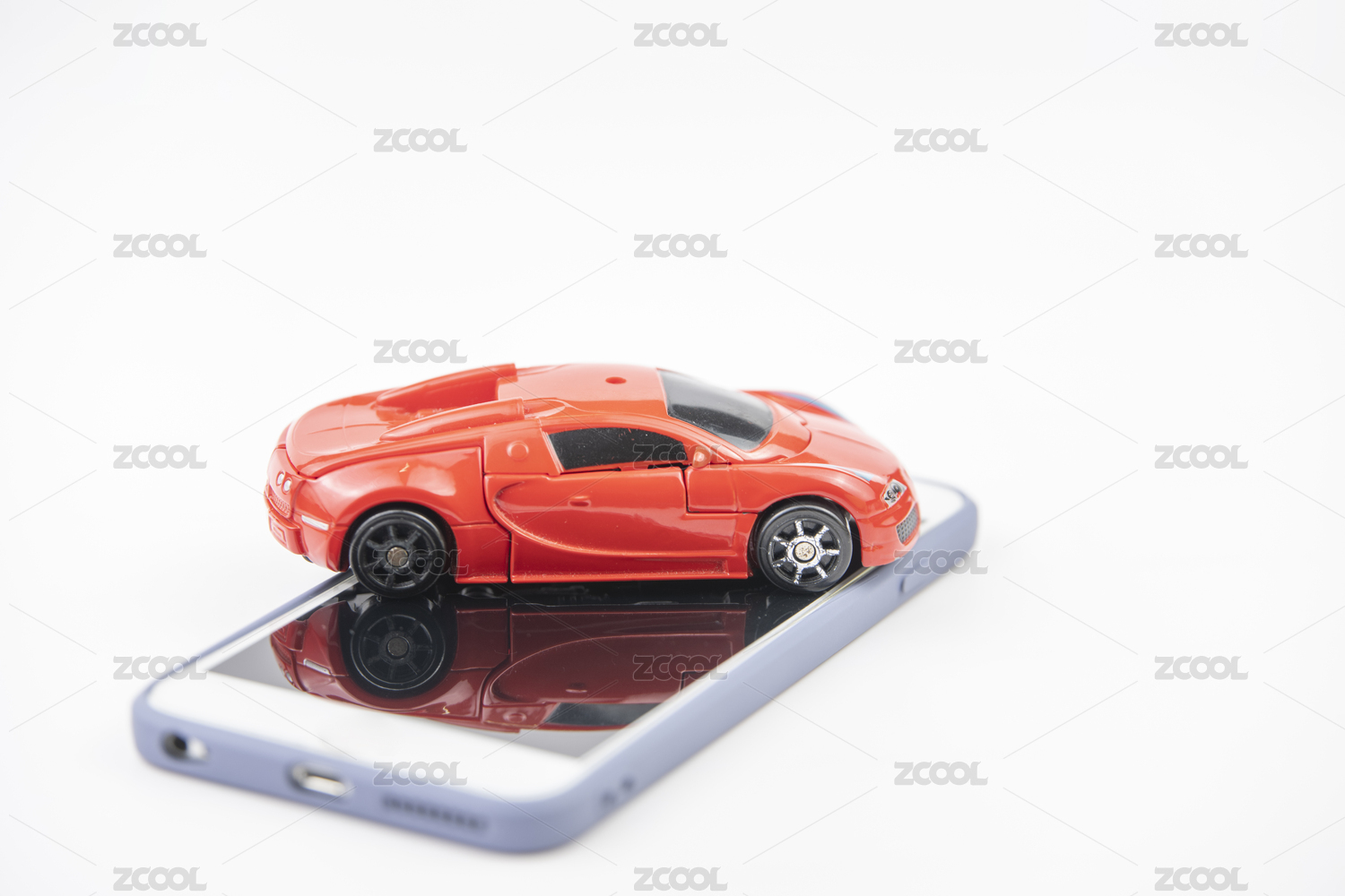 白色背景中放著汽車和手機