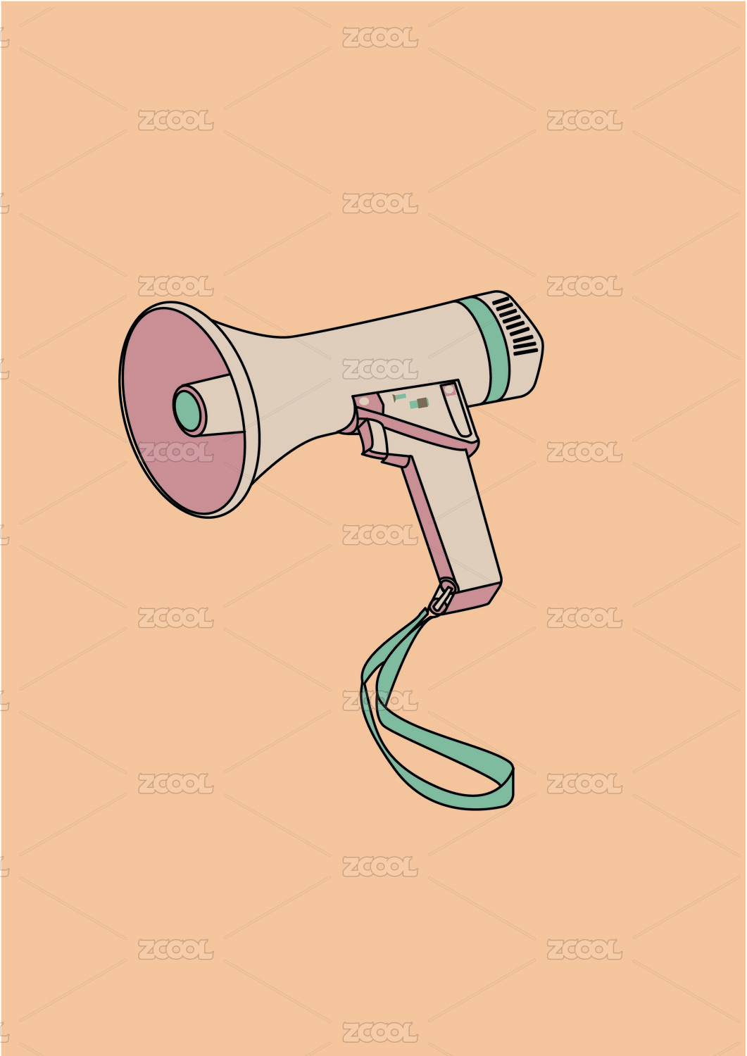 手繪卡通橙色精美小喇叭插畫