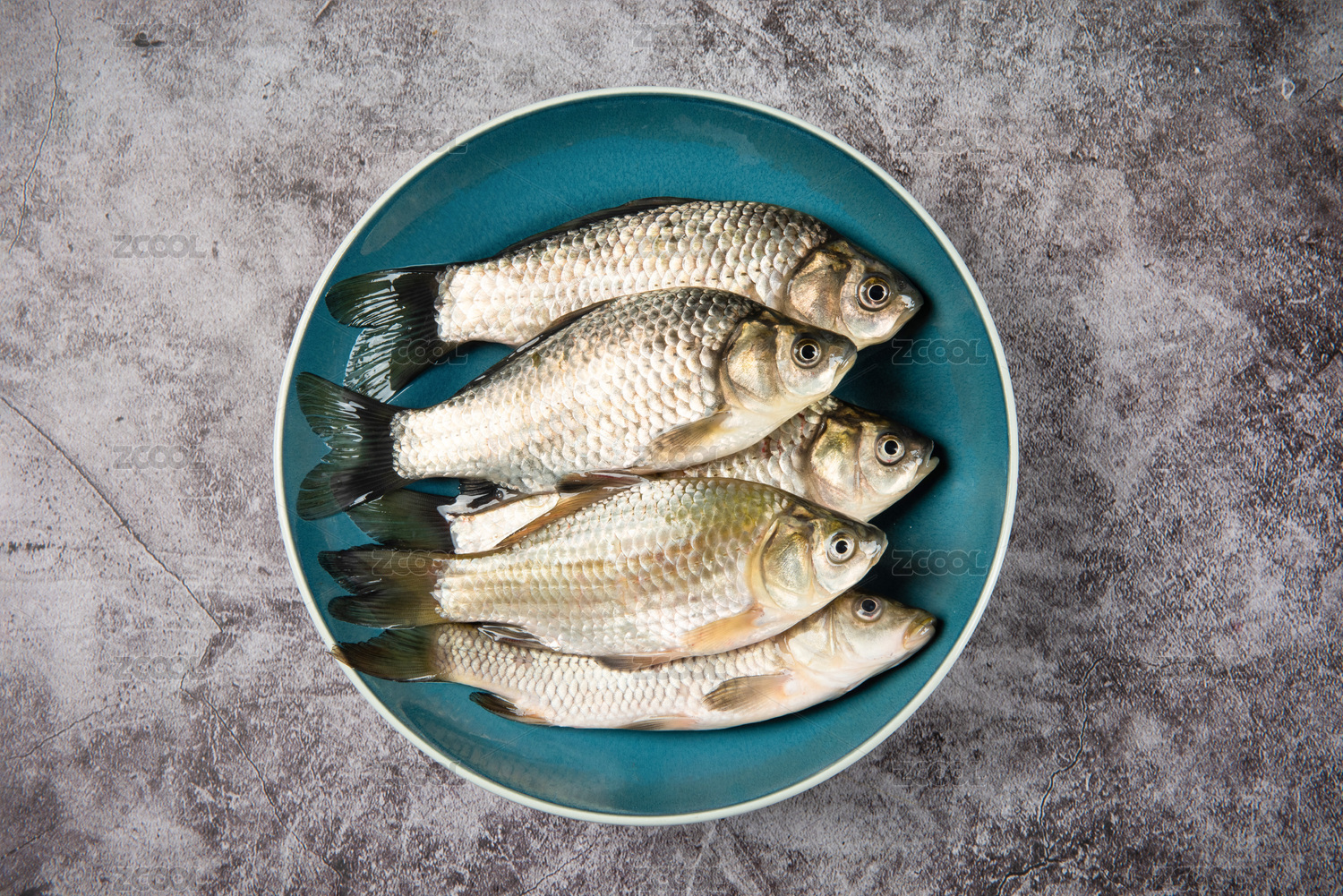 剛捕撈釣起上鉤的新鮮河鯽魚特寫