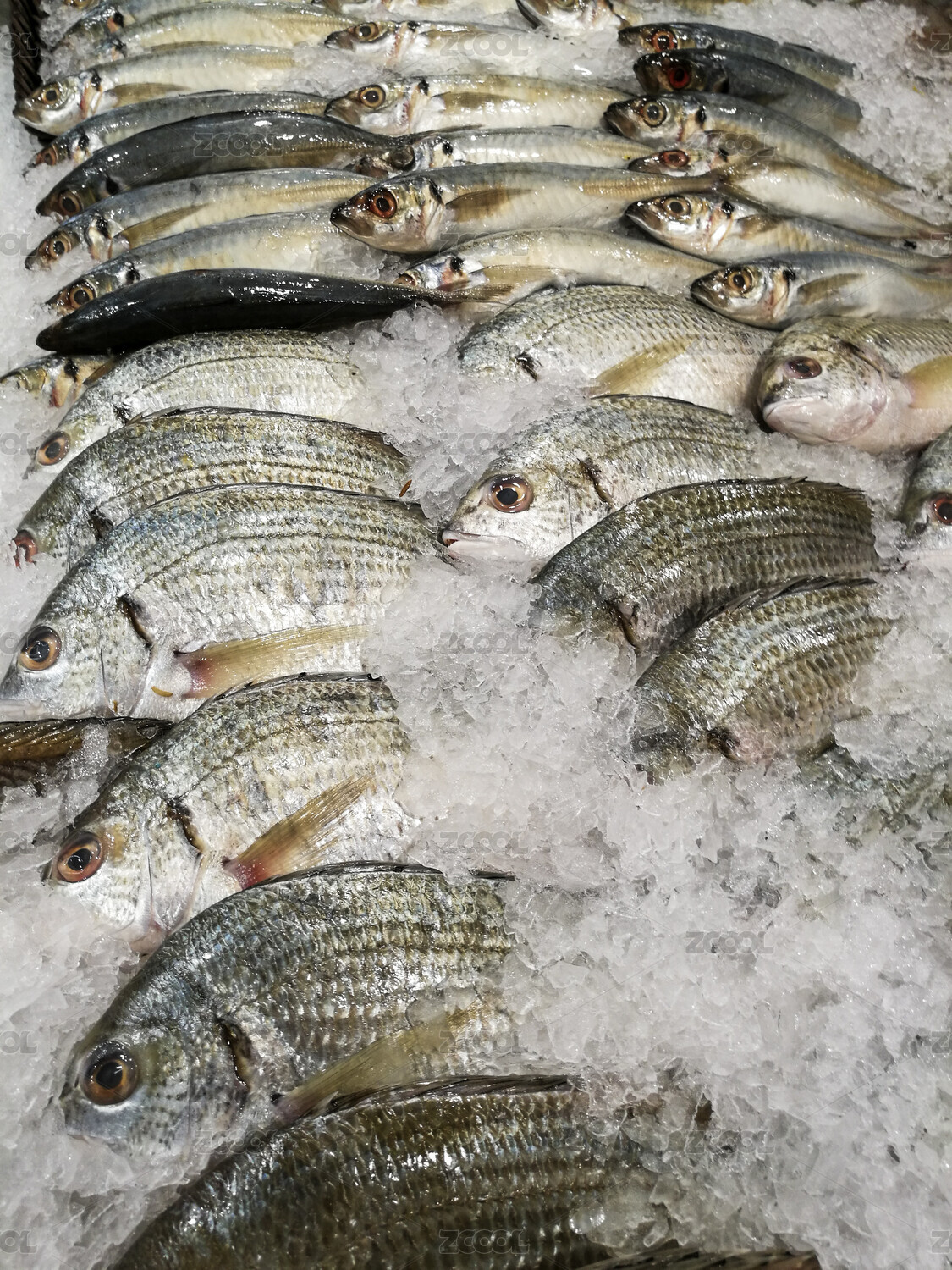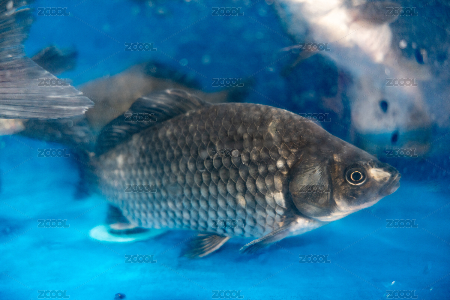 亞洲中國(guó)超市水產(chǎn)區(qū)水池內(nèi)待售的黑色鯽魚